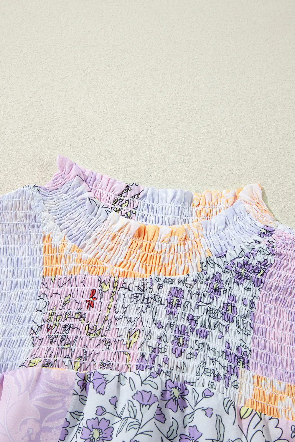 Frill Printed Mock Neck Long Sleeve Mini Dress