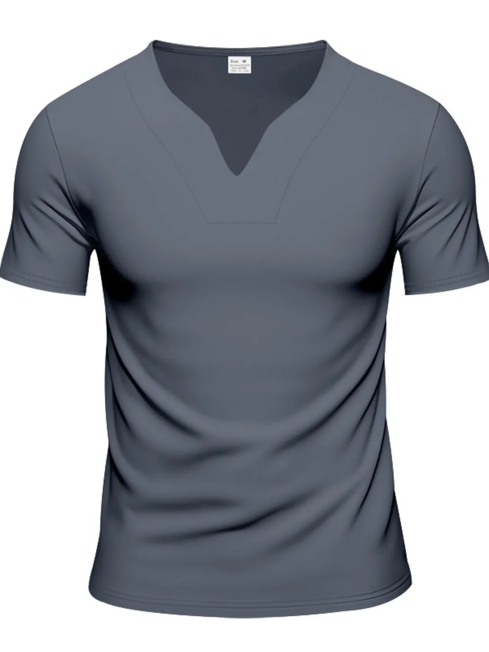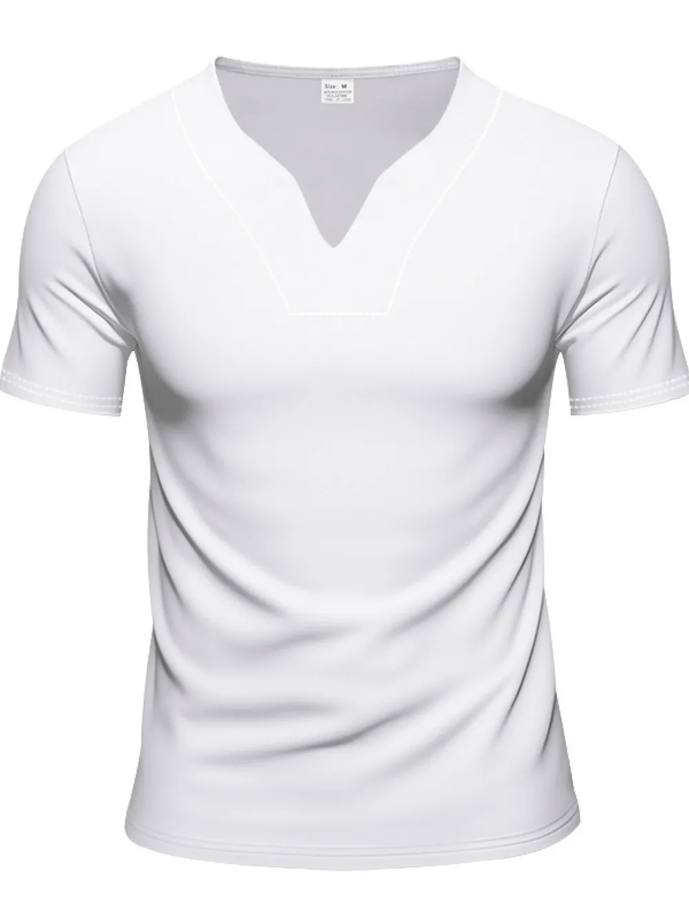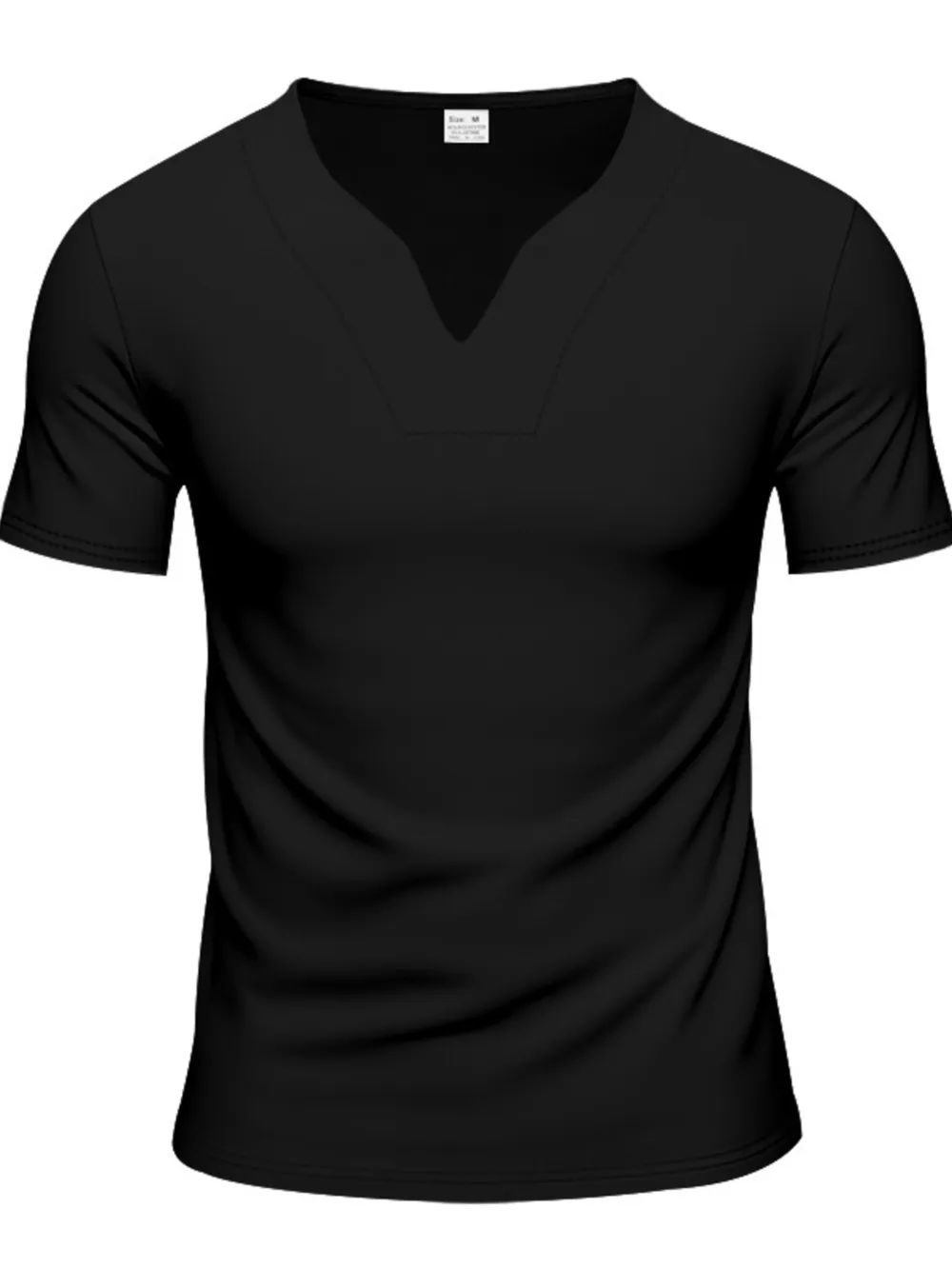 Men's Full Size Notched Short Sleeve T-Shirt Plus Size