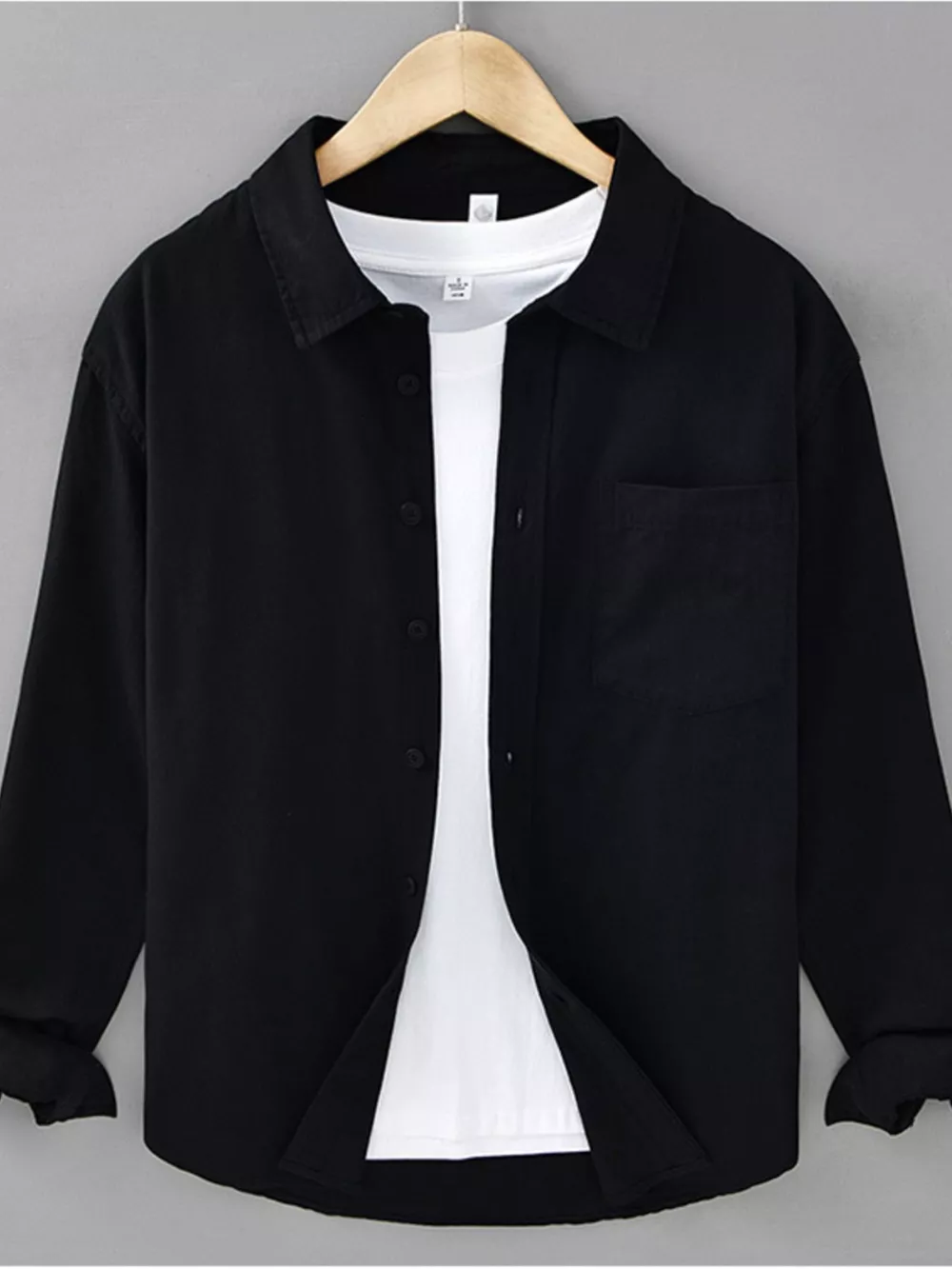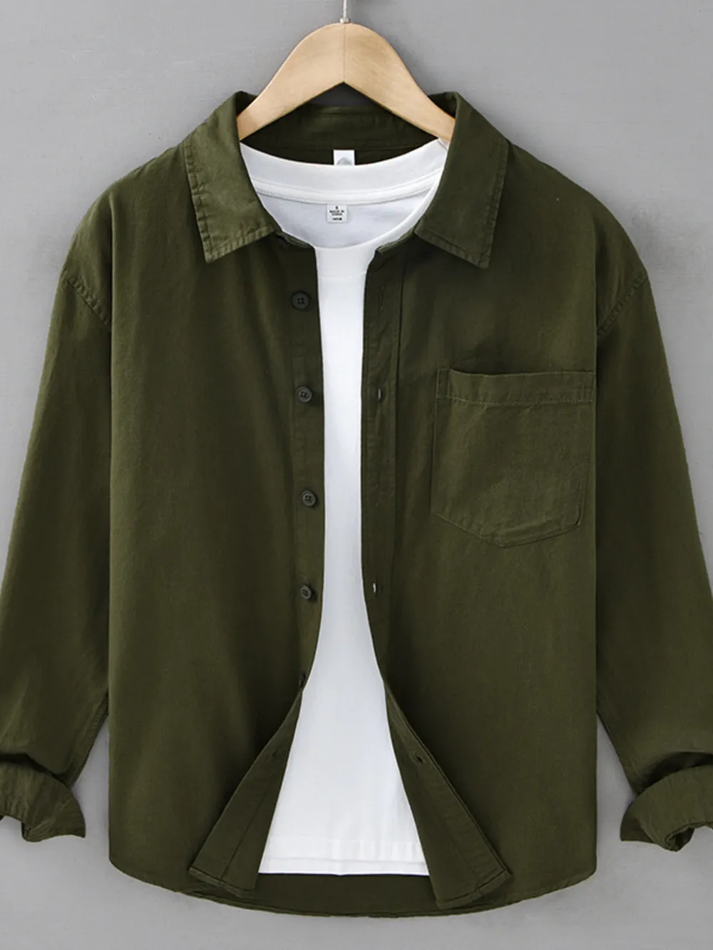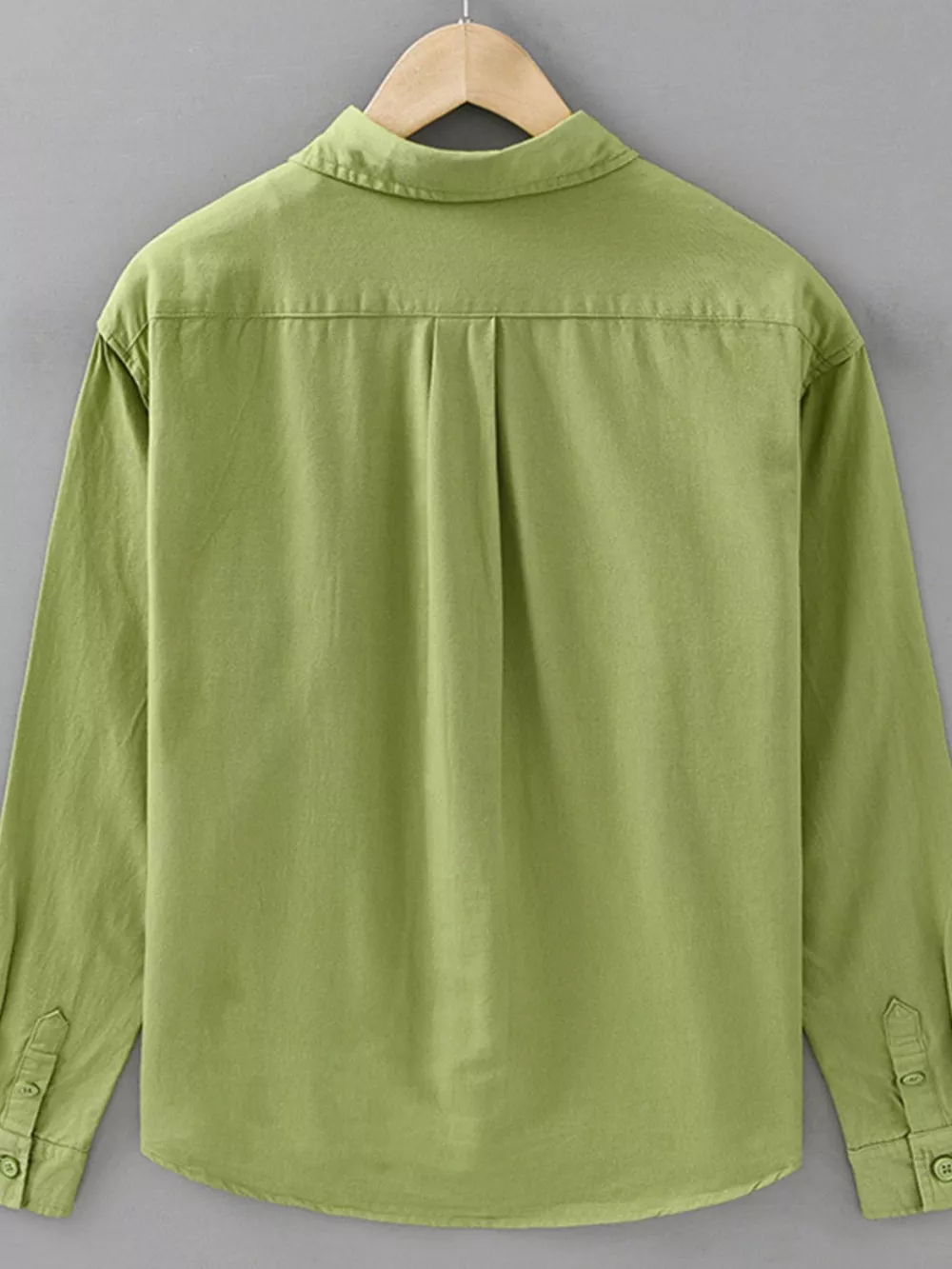 Men's Plus Size Casual Solid Color Long Sleeve Shirt