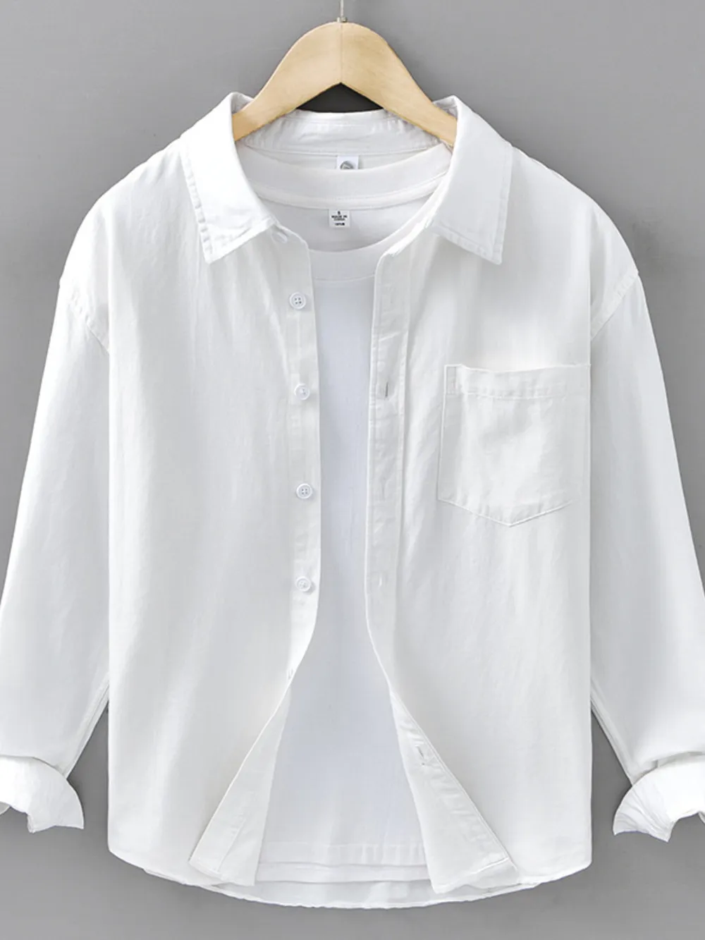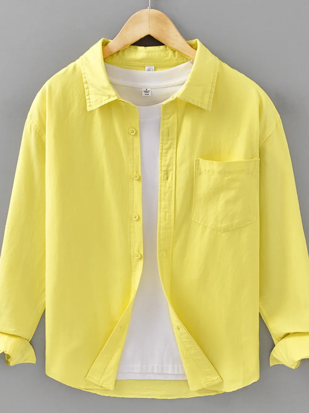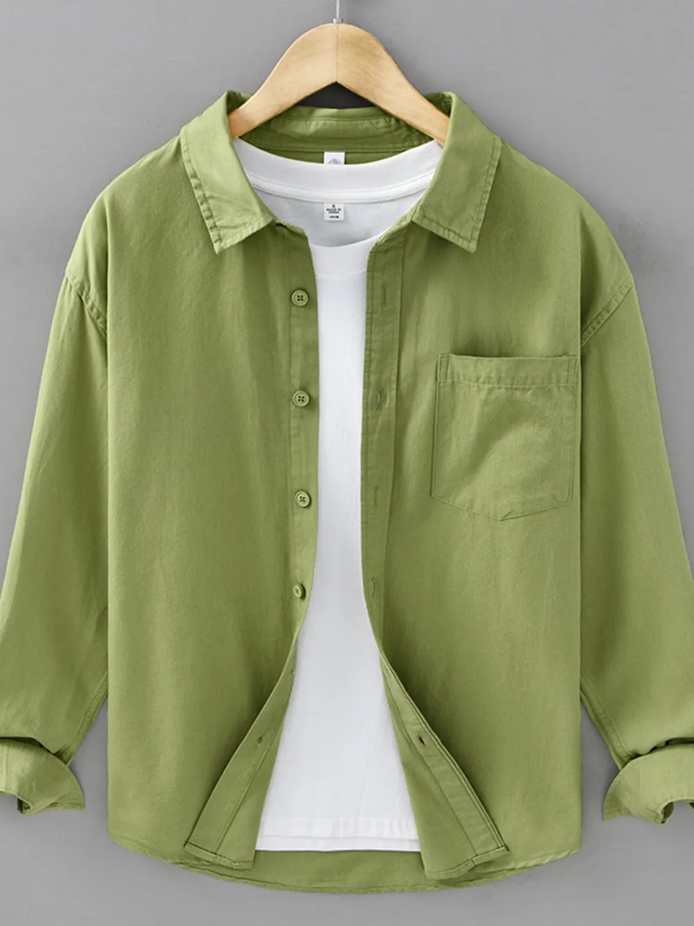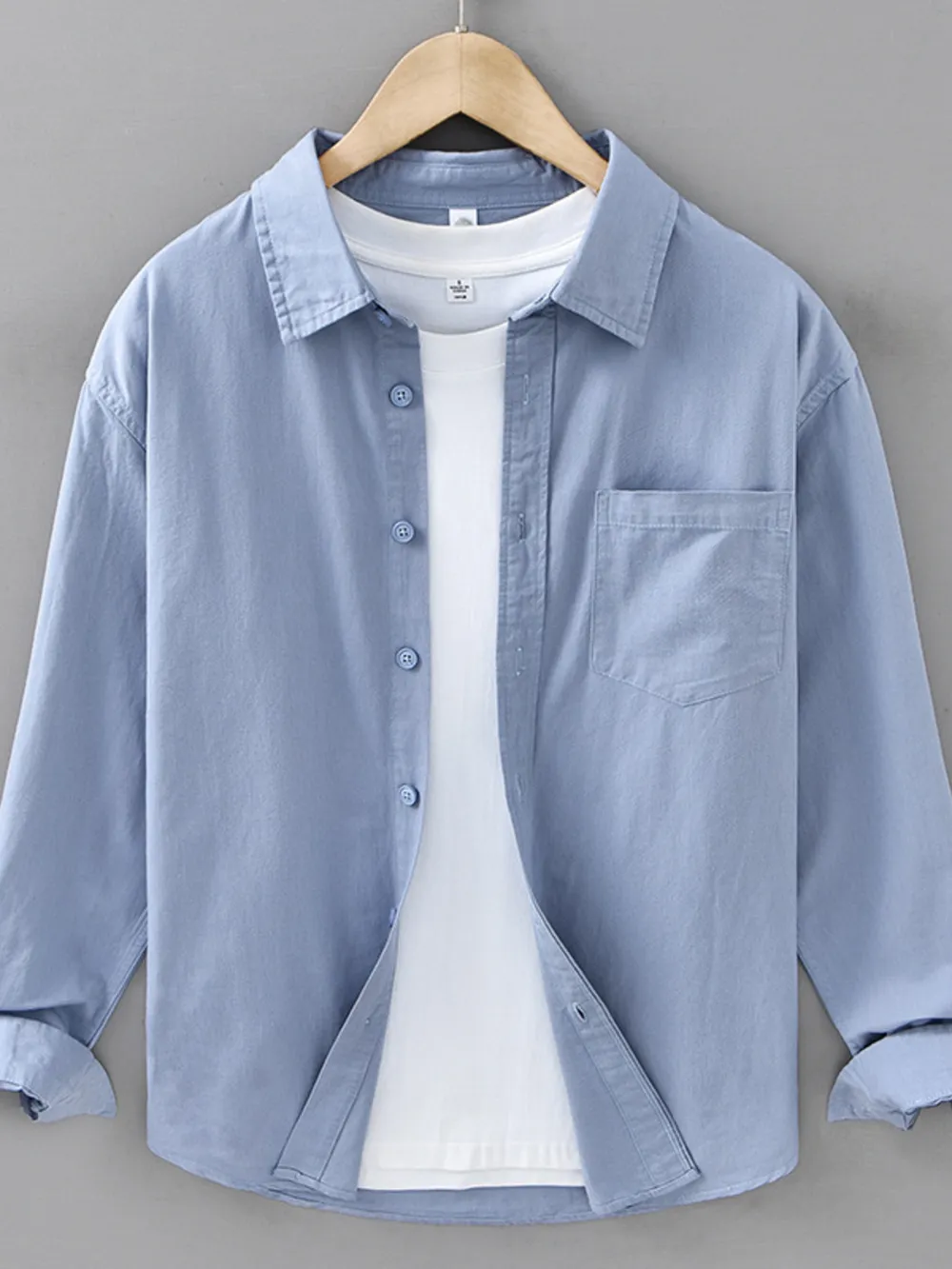 Men's Plus Size Casual Solid Color Long Sleeve Shirt