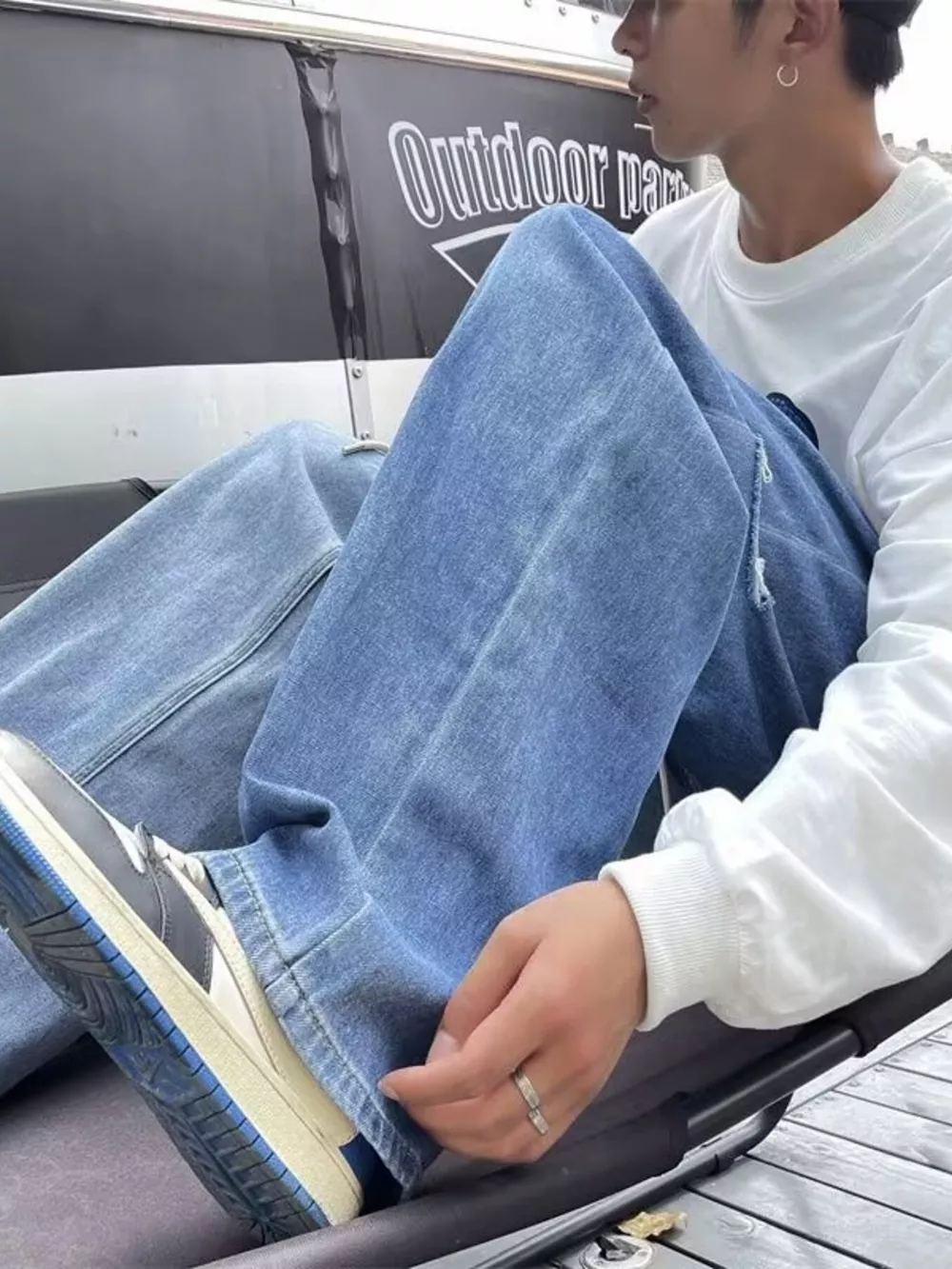Men's Full Size Ripped Wide Leg Jeans Plus Size