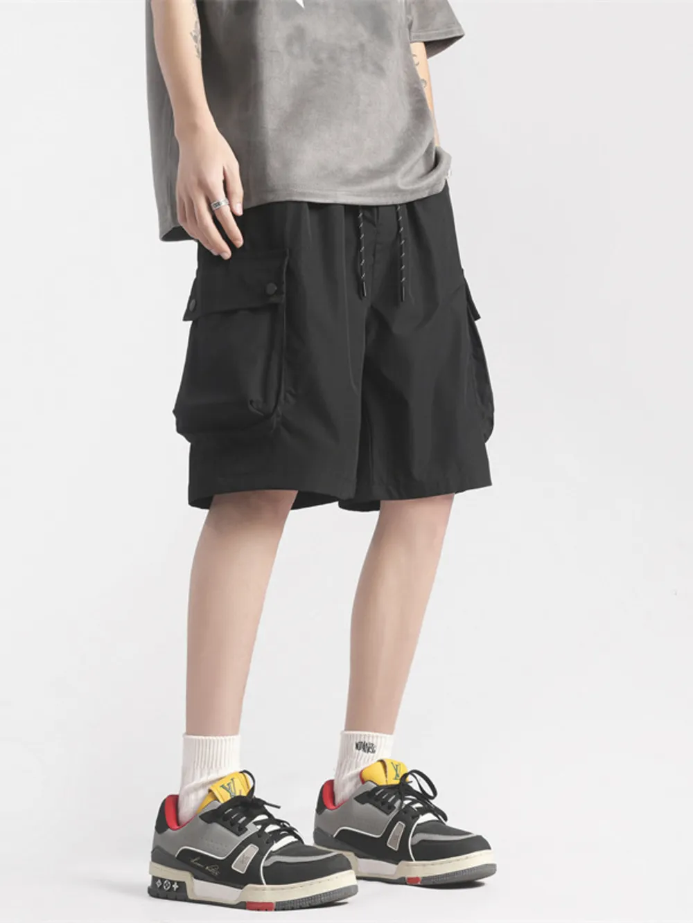 Men's Plus Size Casual Cargo Shorts with Drawstring