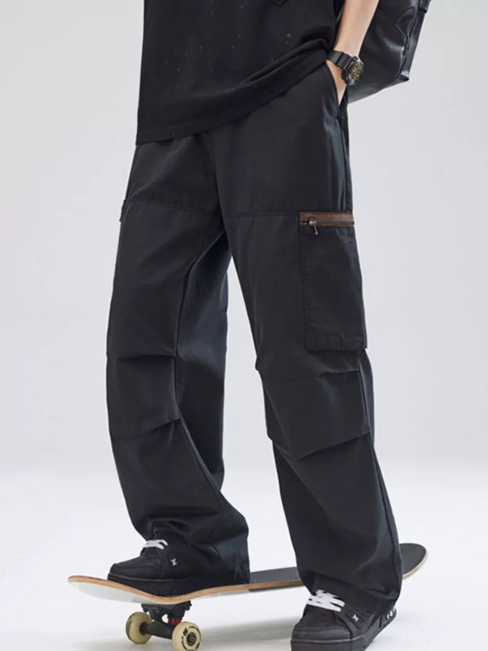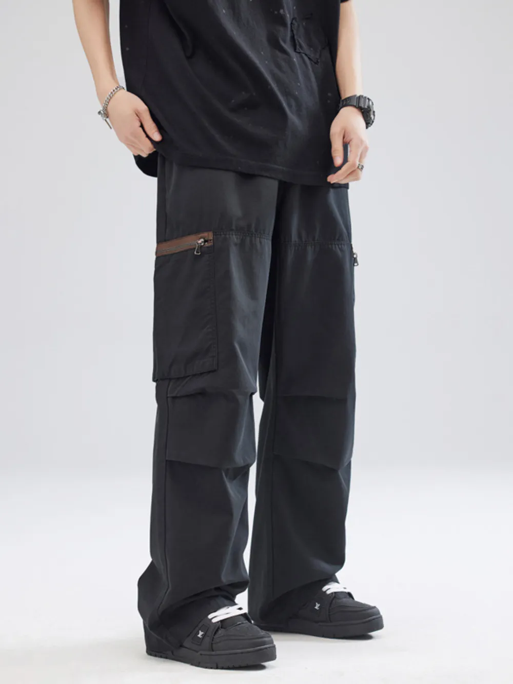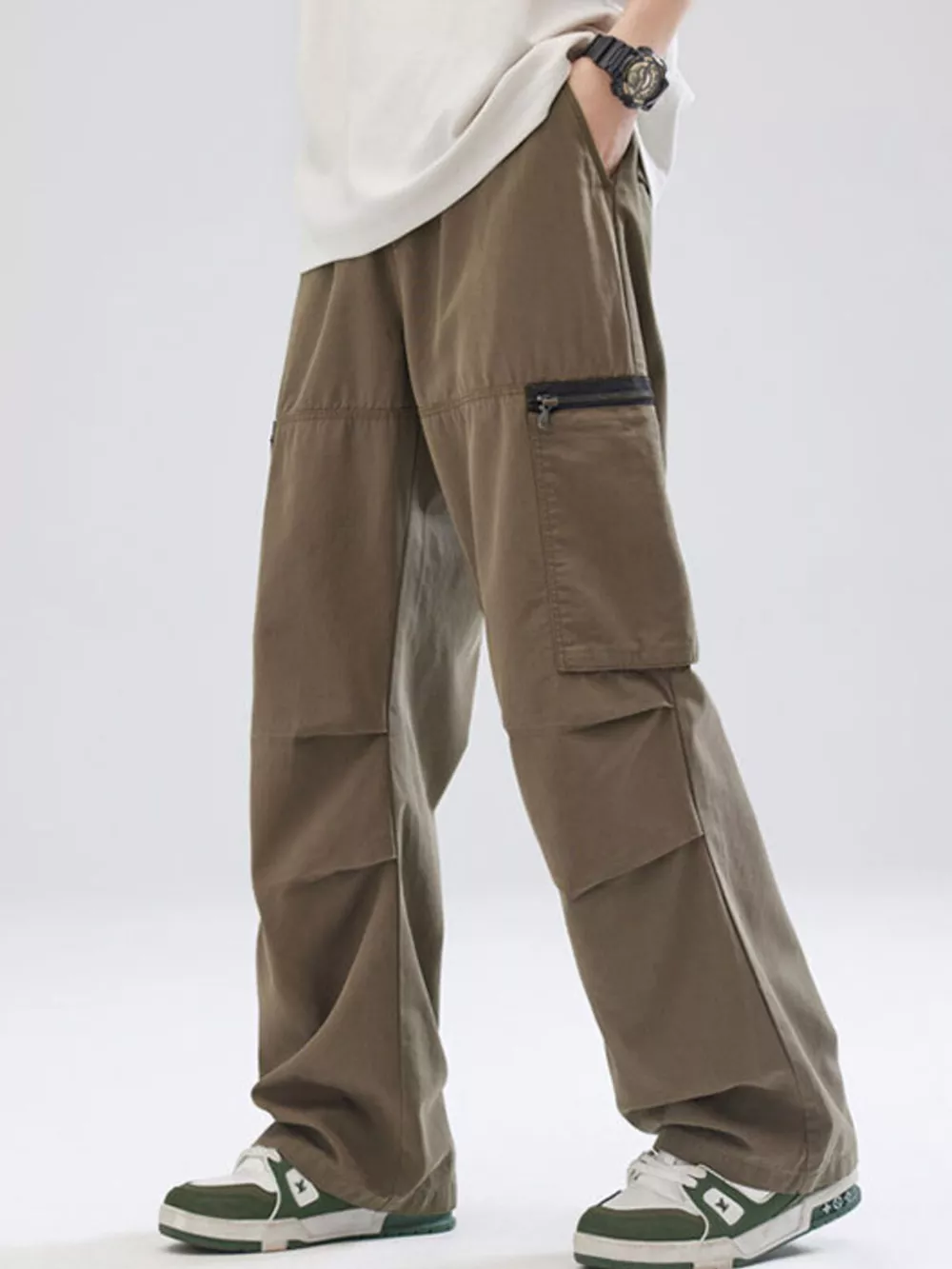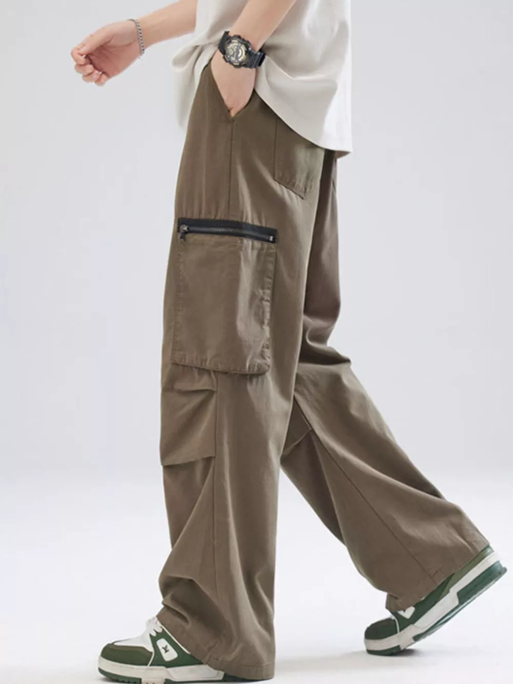 Men's Full Size Relaxed Fit Cargo Pants with Zipper Pockets Plus Size