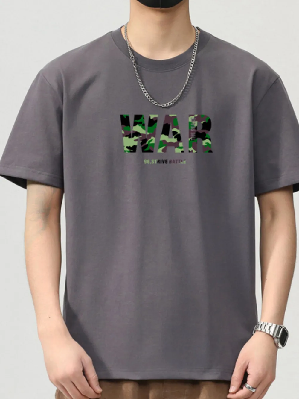 Men's Plus Size Letter Round Neck Short Sleeve T-Shirt