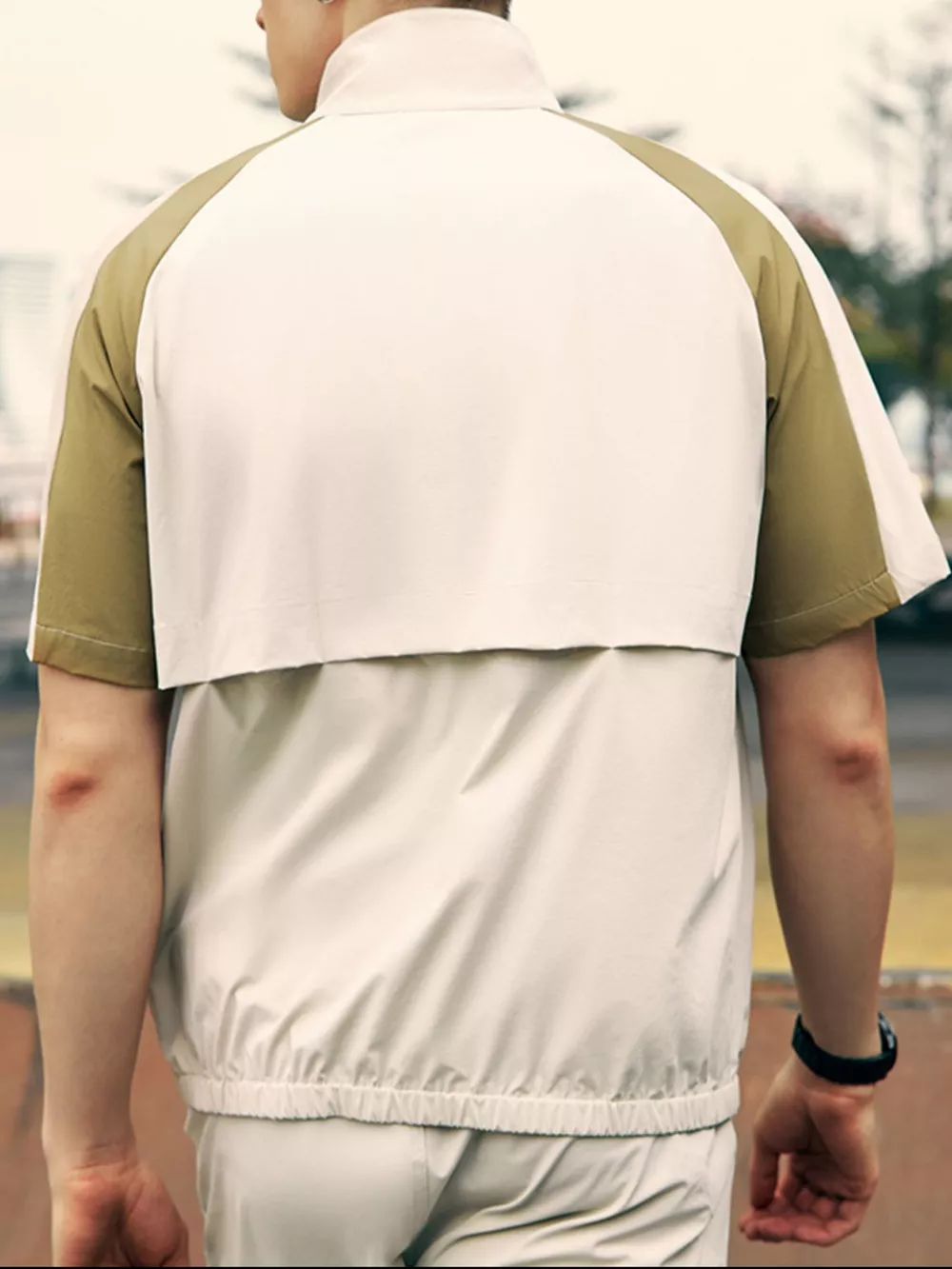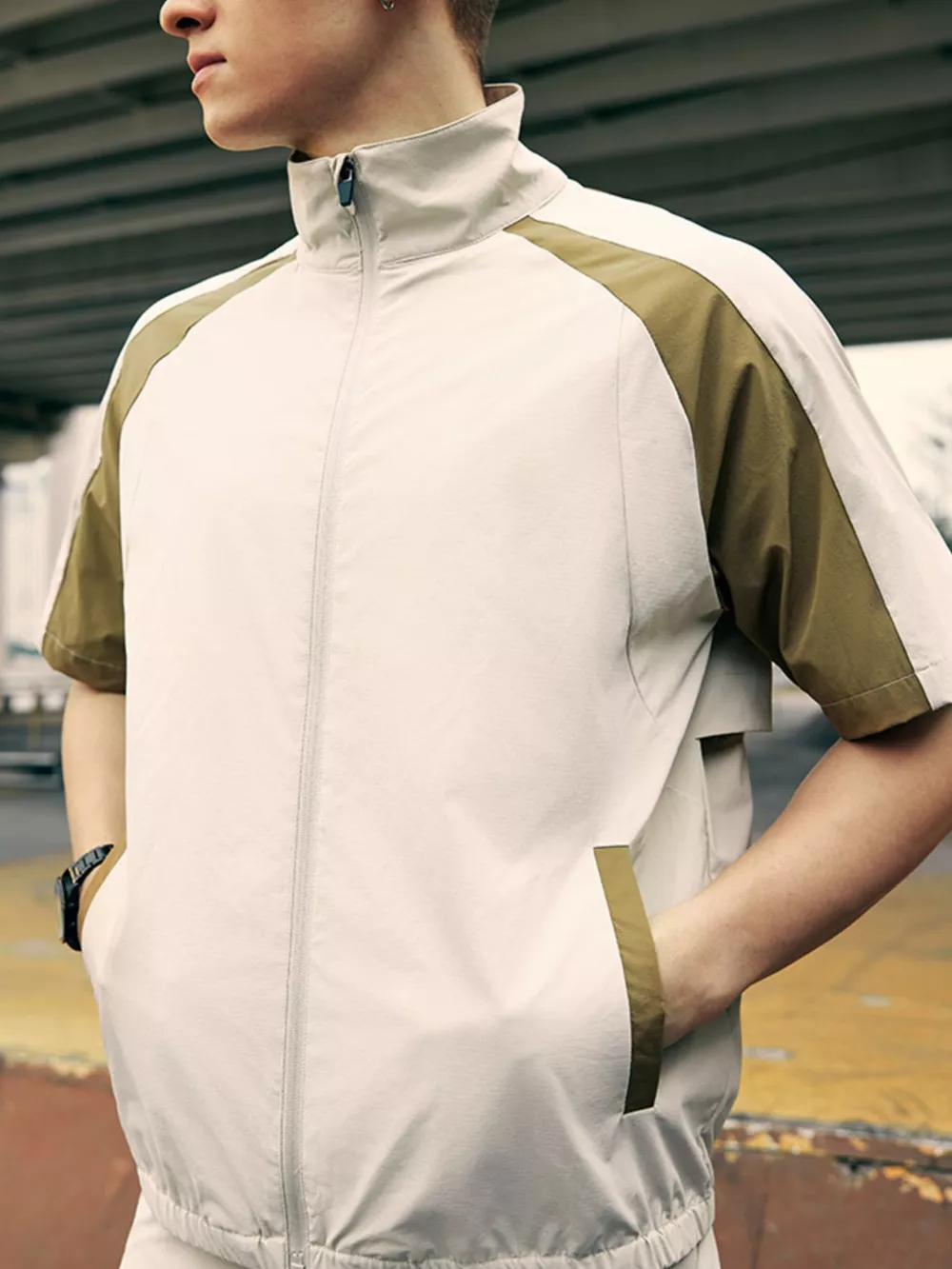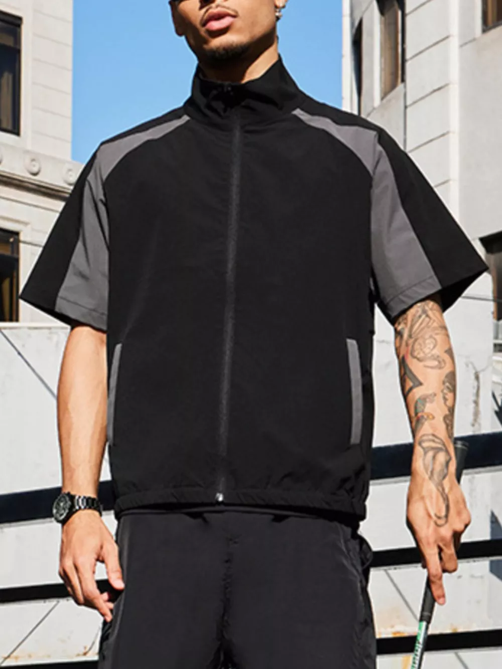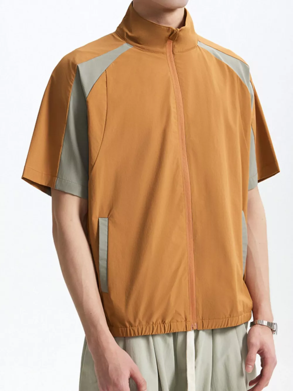Men's Color Block Zip Up Short Sleeve Jacket