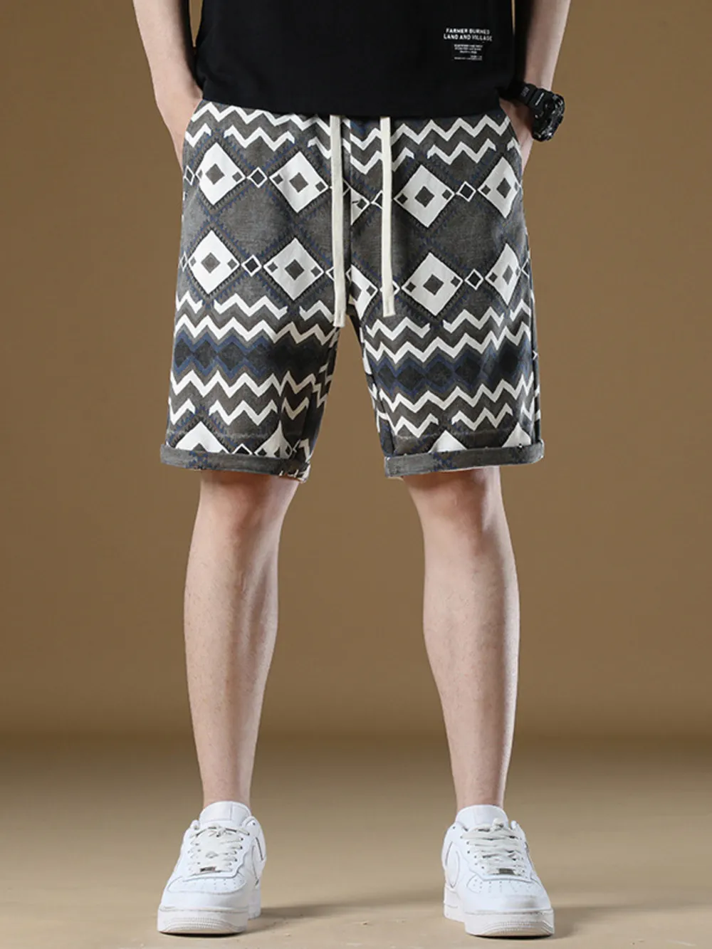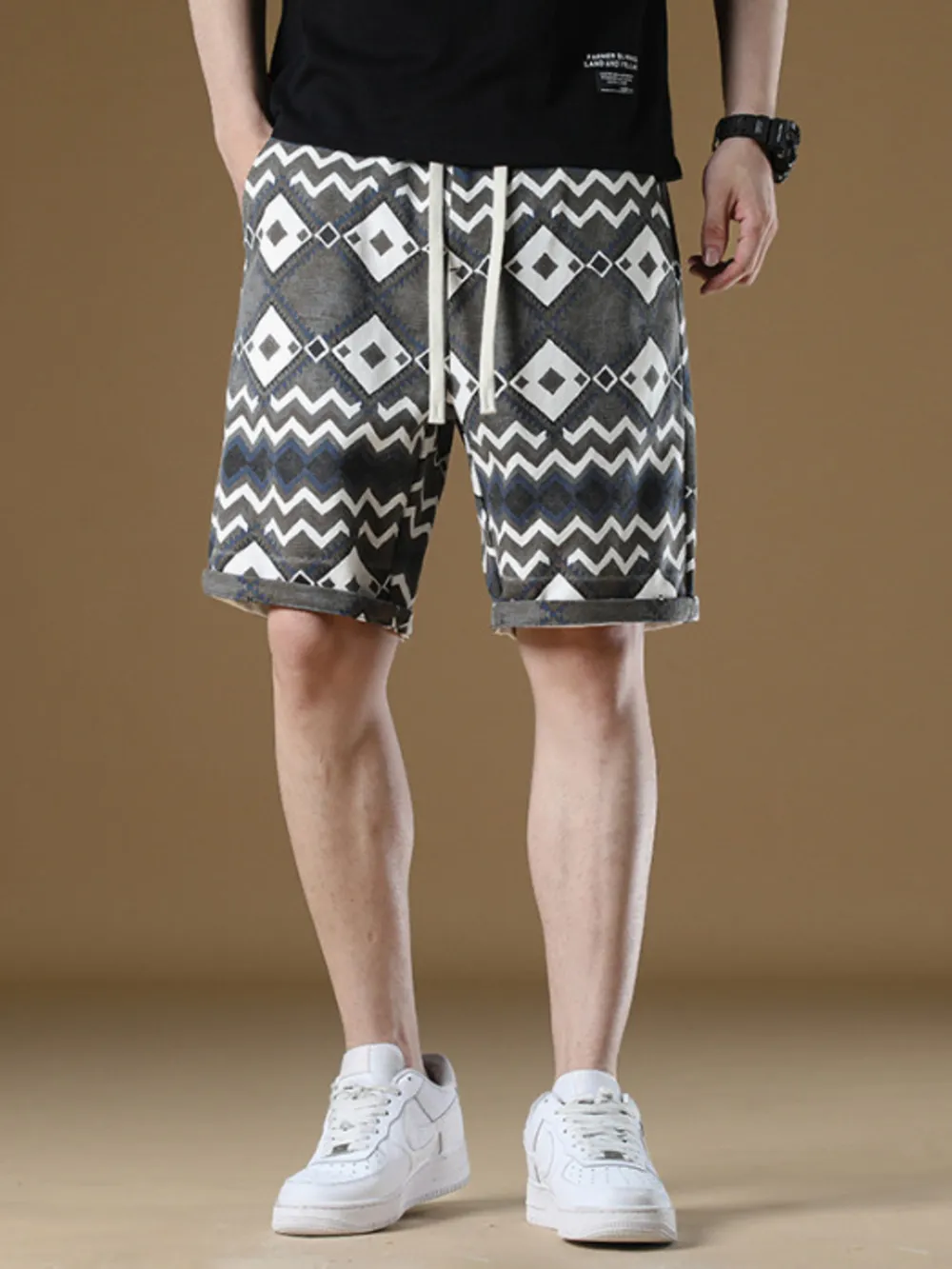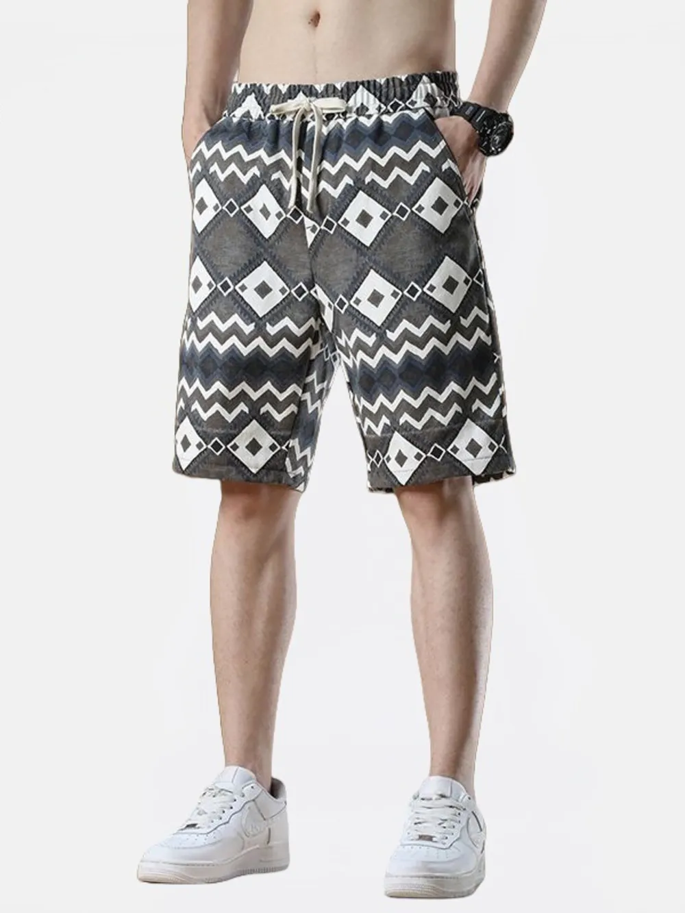 Men's Plus Size Geometric Pattern Drawstring Casual Shorts