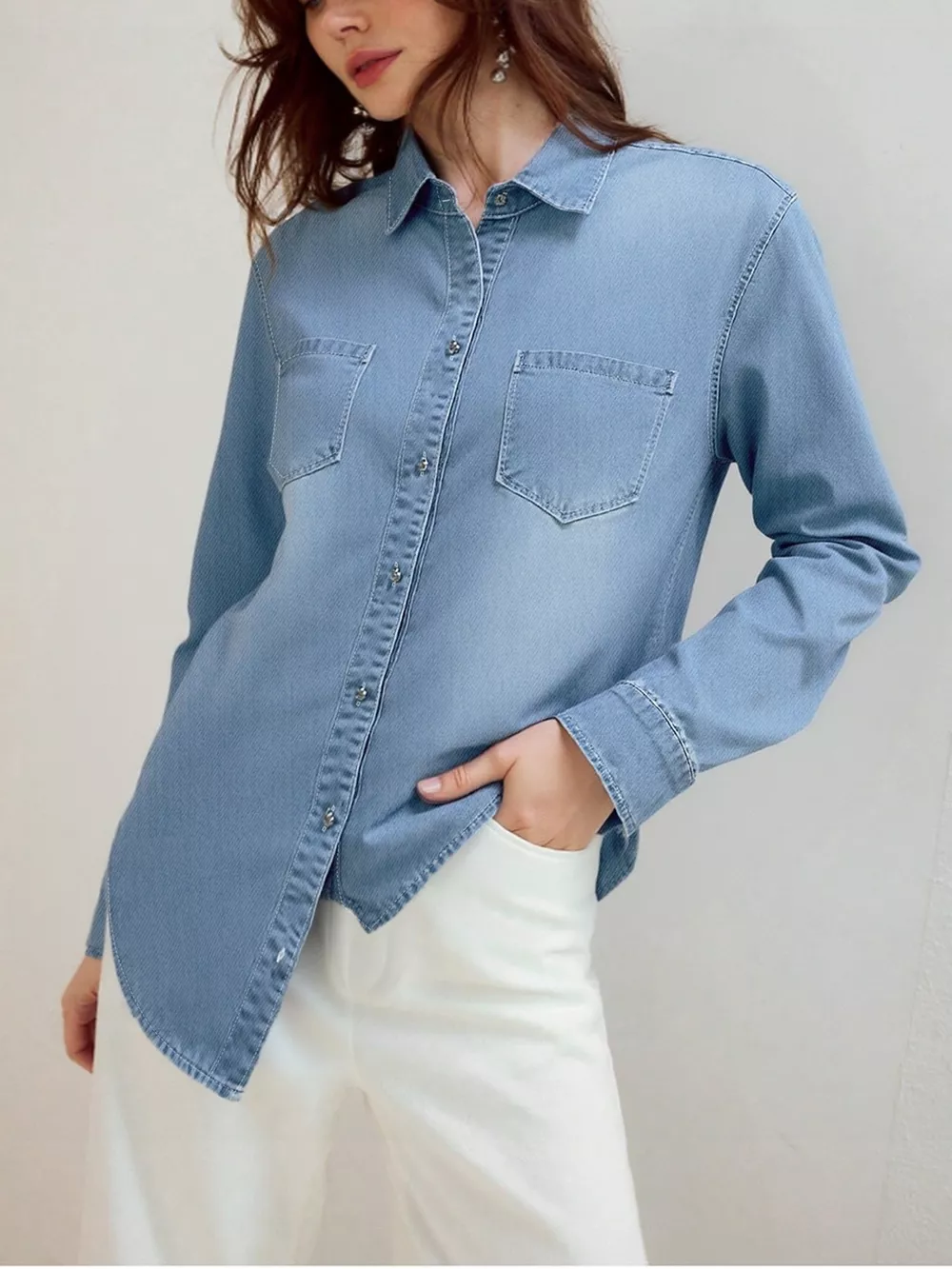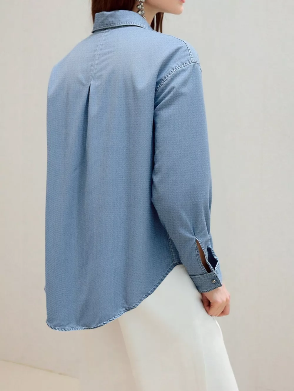 Full Size Button-Up Long Sleeve Denim Shirt Plus Size