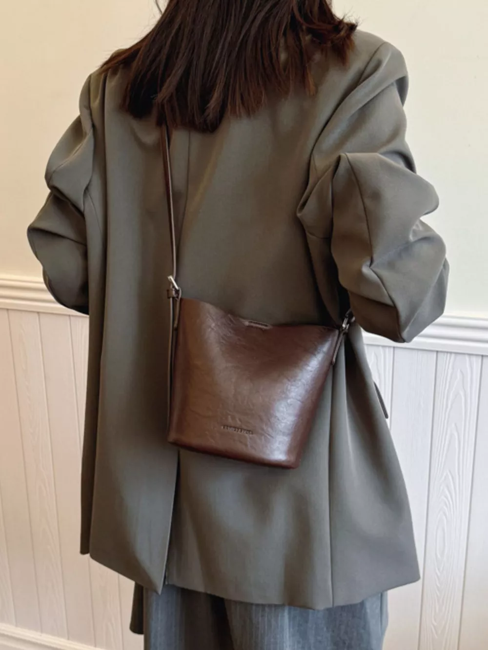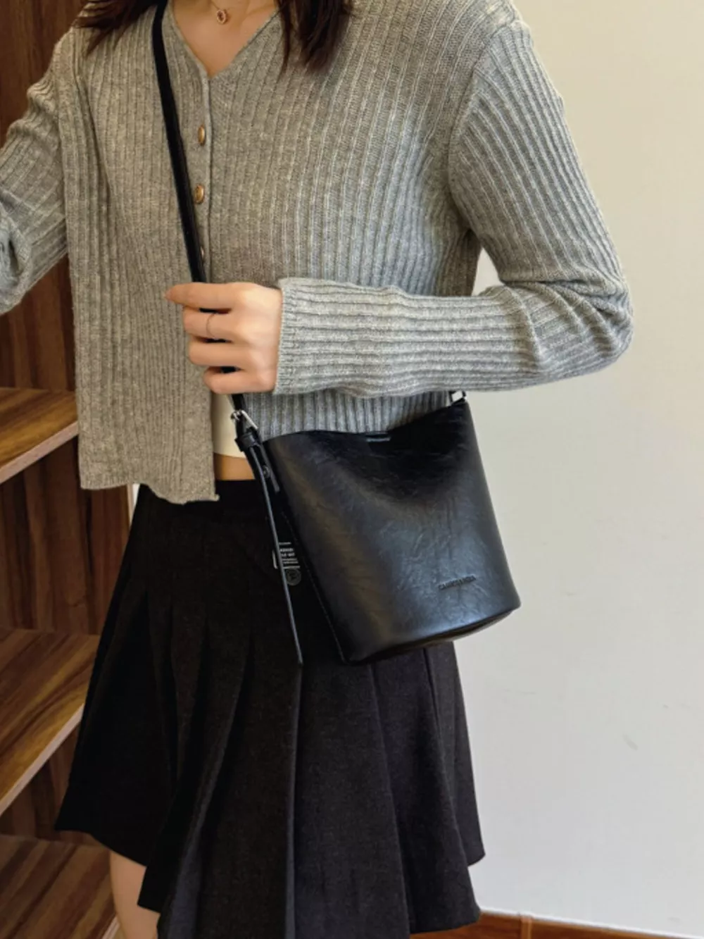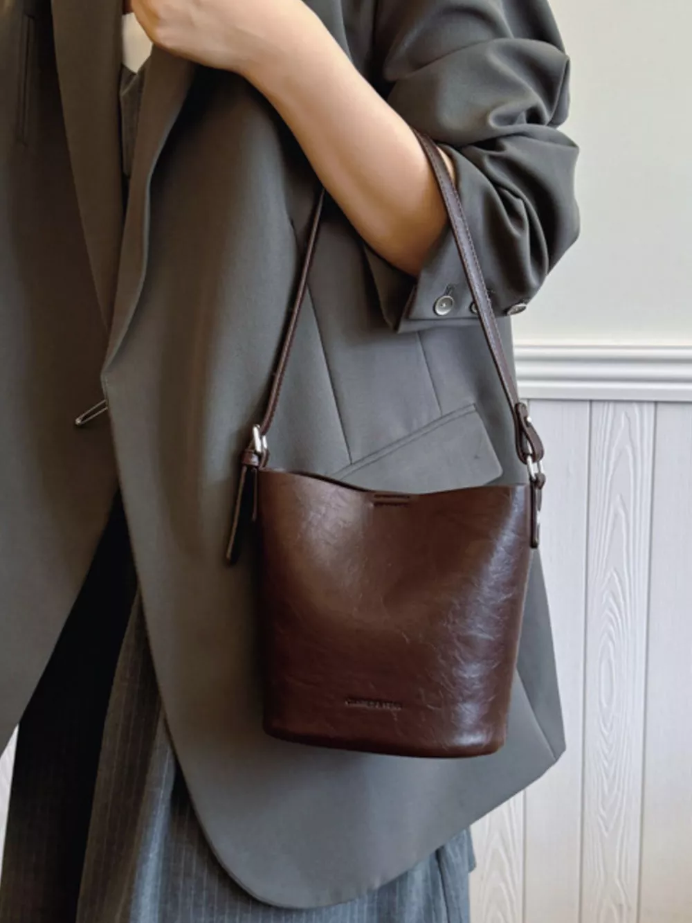 Leather Bucket Crossbody Bag
