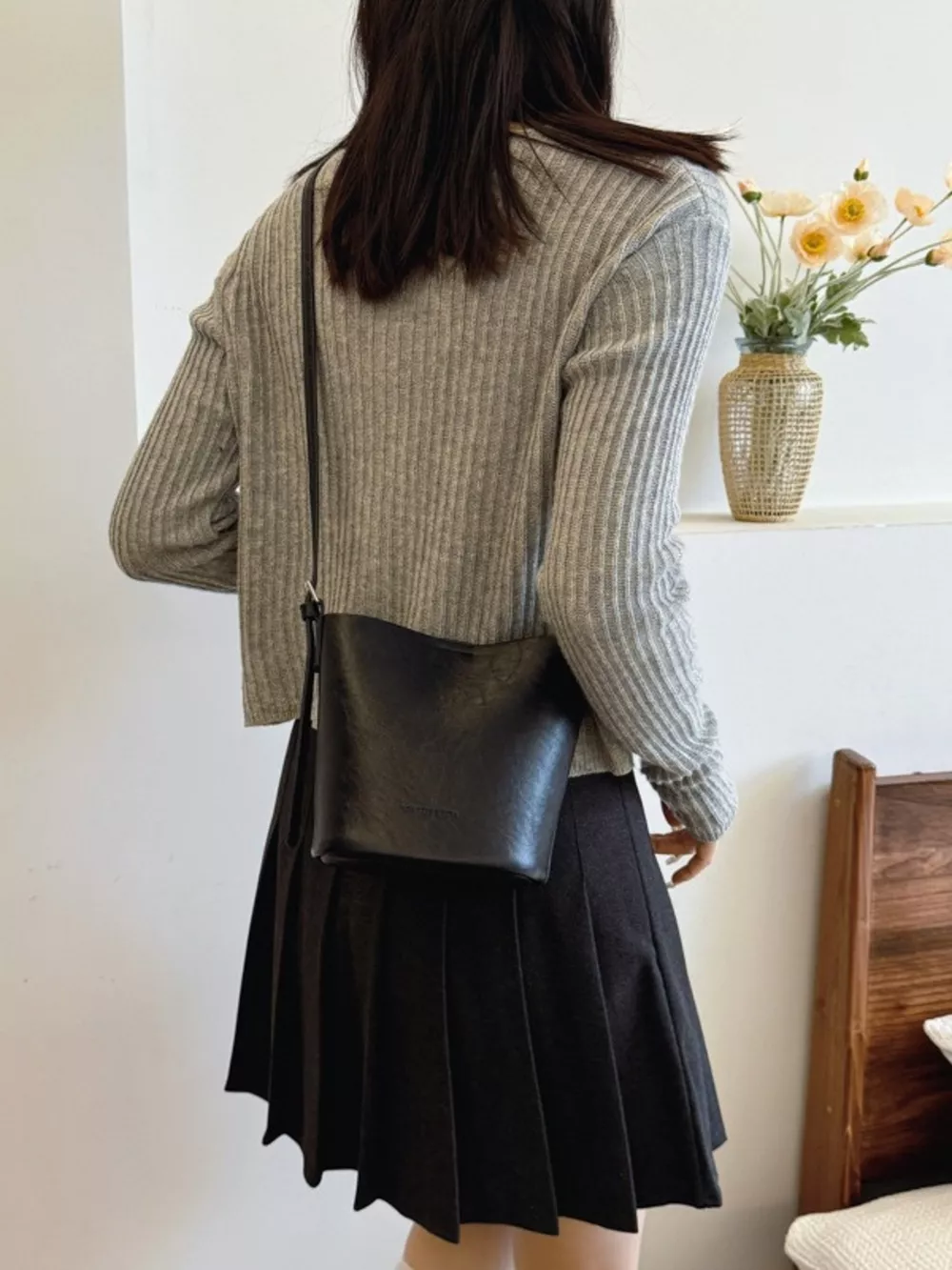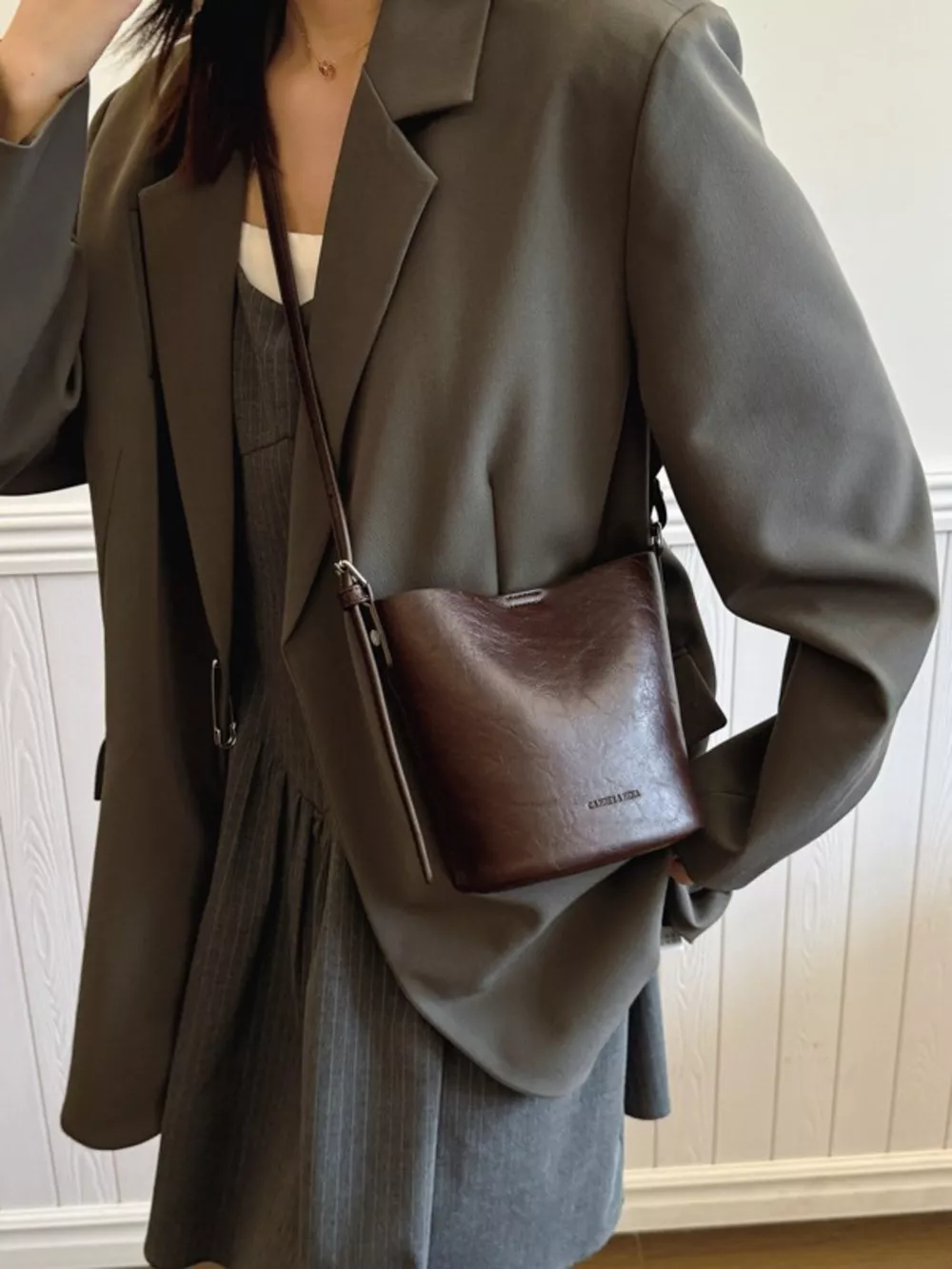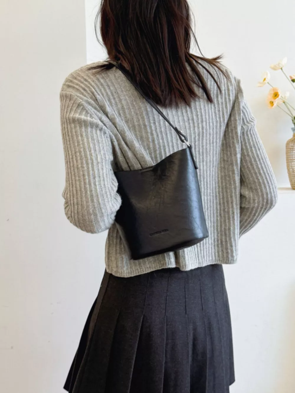 Leather Bucket Crossbody Bag