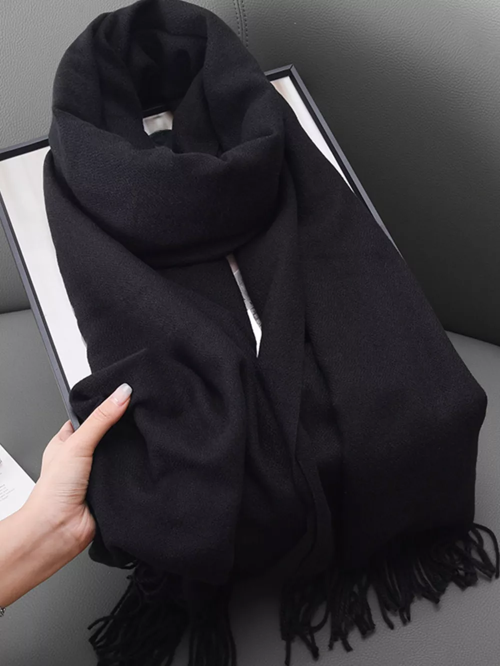 Solid Color Fringe Scarf