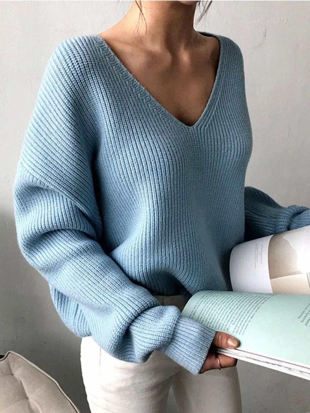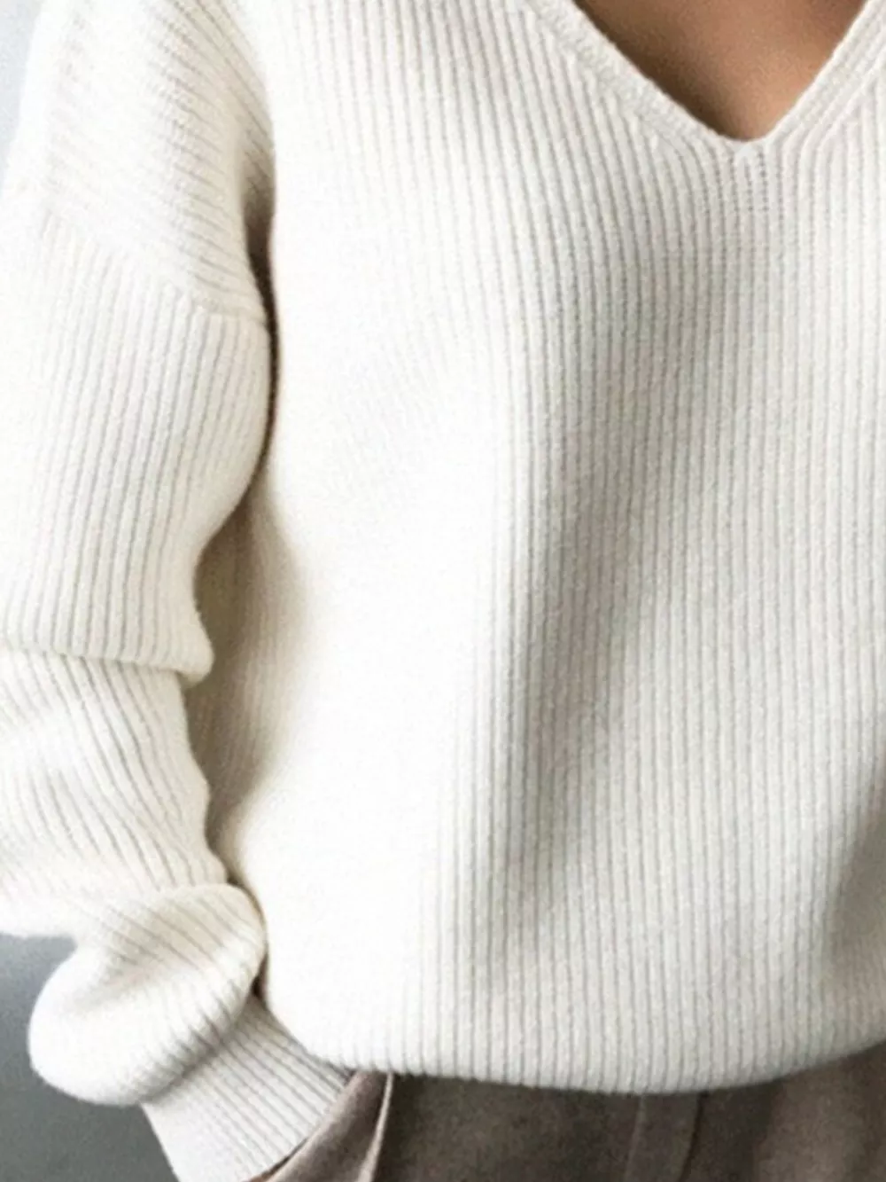V-Neck Dropped Shoulder Sweater