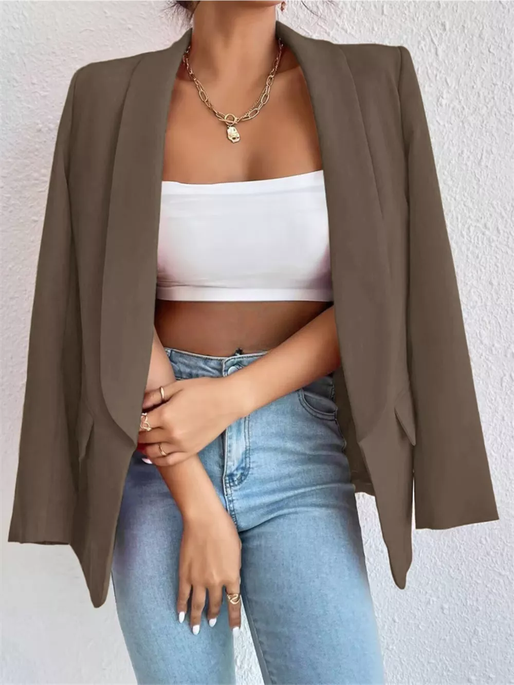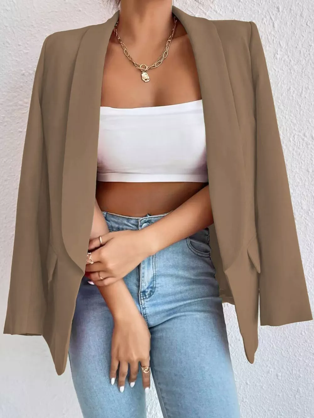 Full Size Open Front Long Sleeve Casual Blazer Plus Size