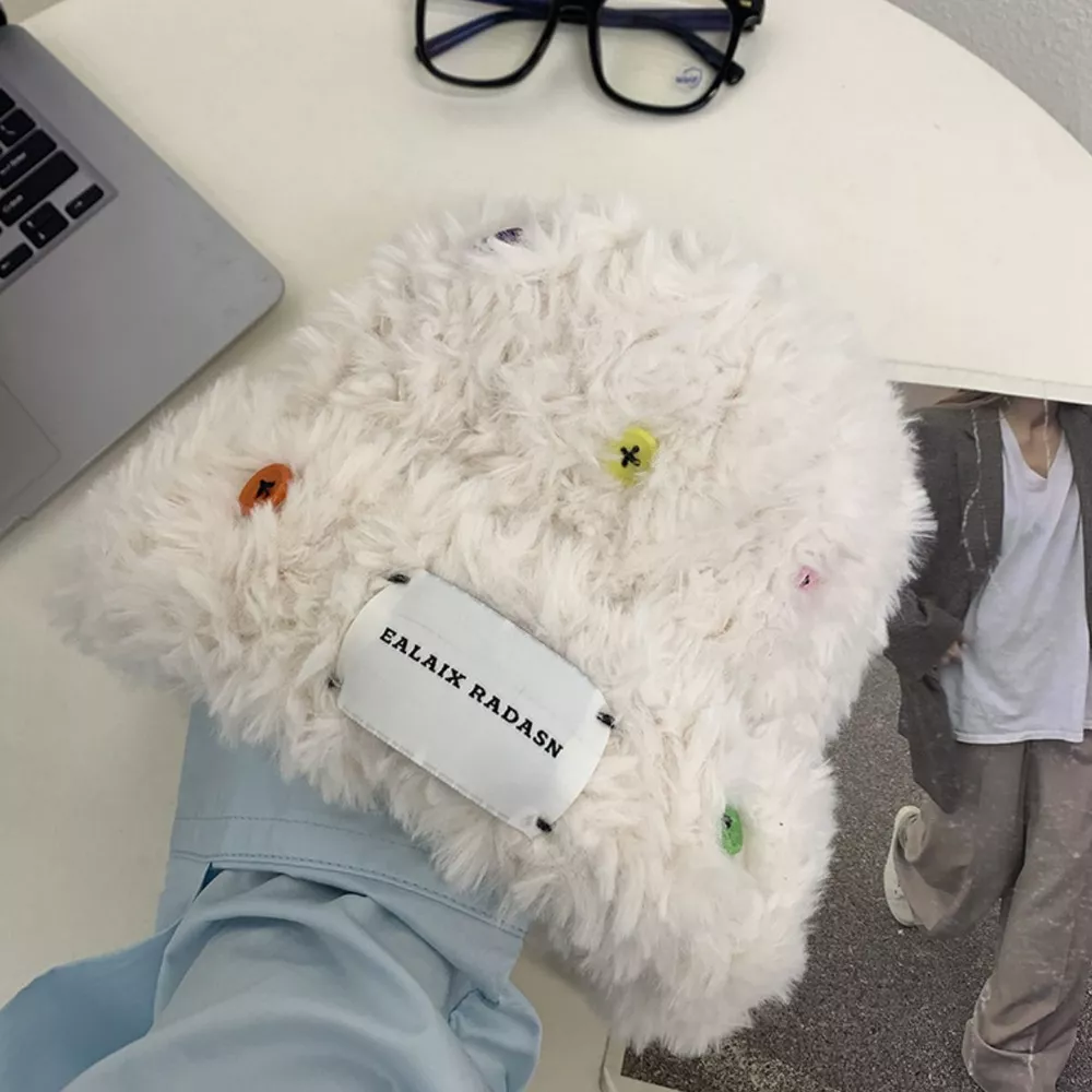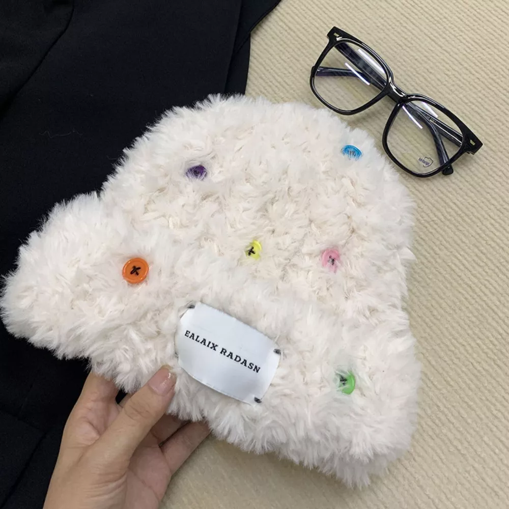 Colorful Buttons Decor Plush Beanie Hat