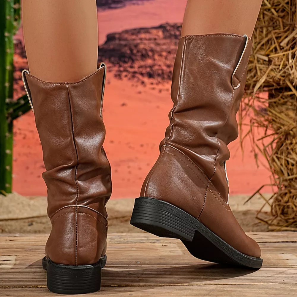 Block Heel Mid-Calf Western Boots