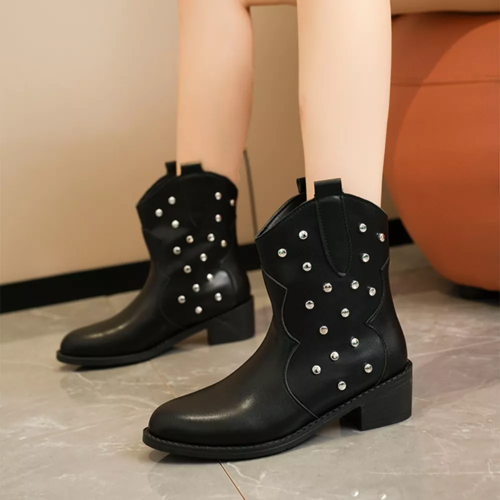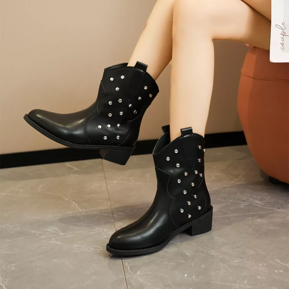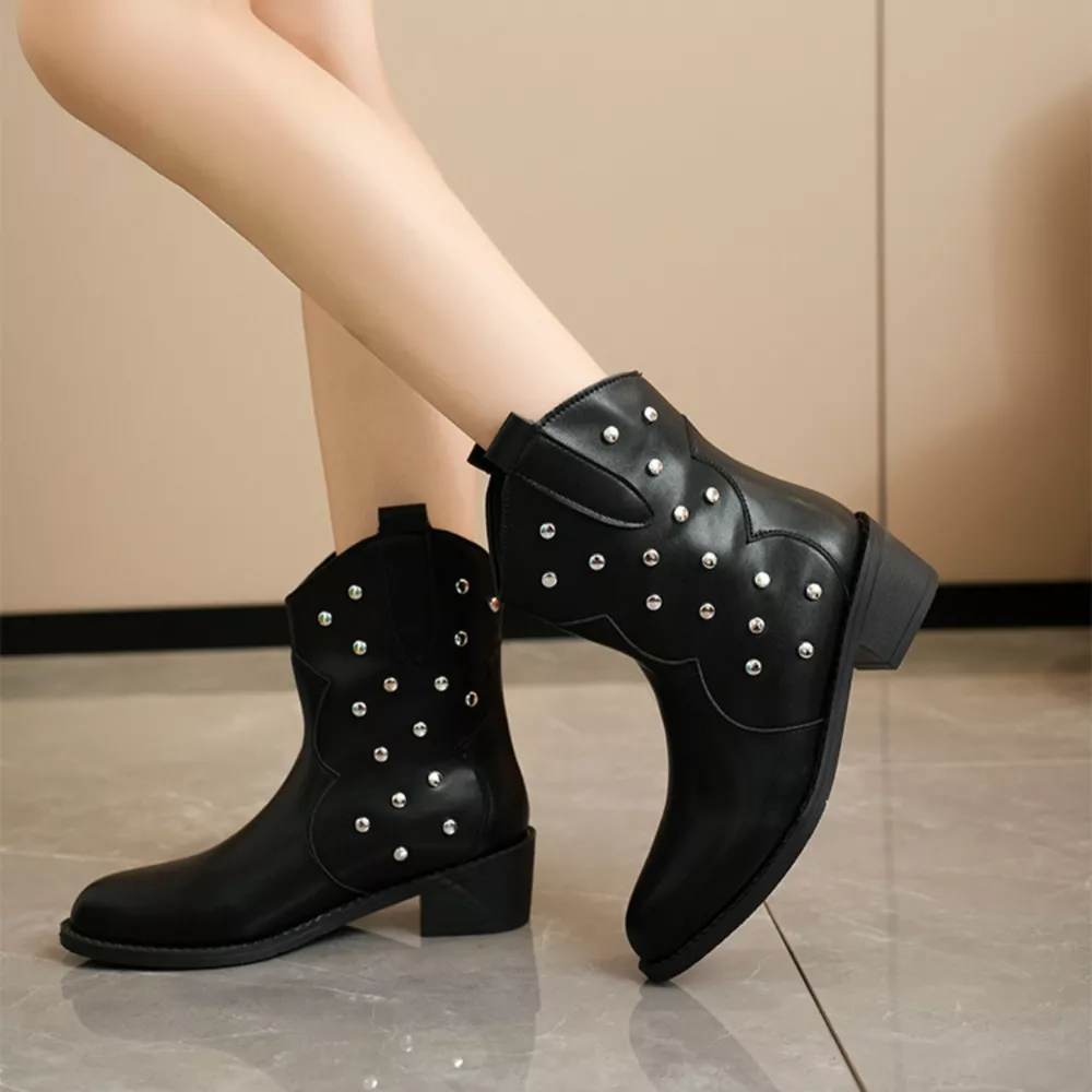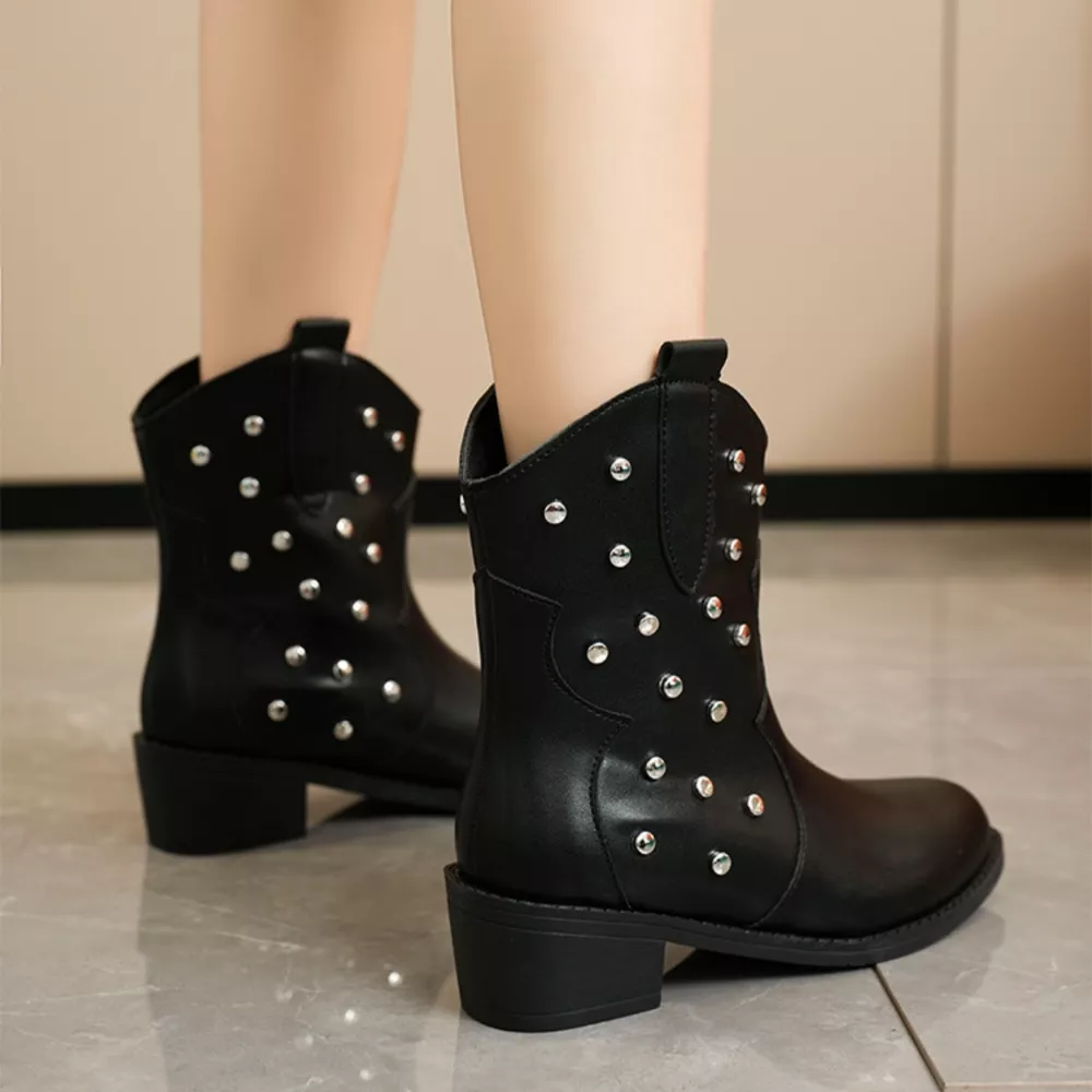 Studded Western Ankle Boots