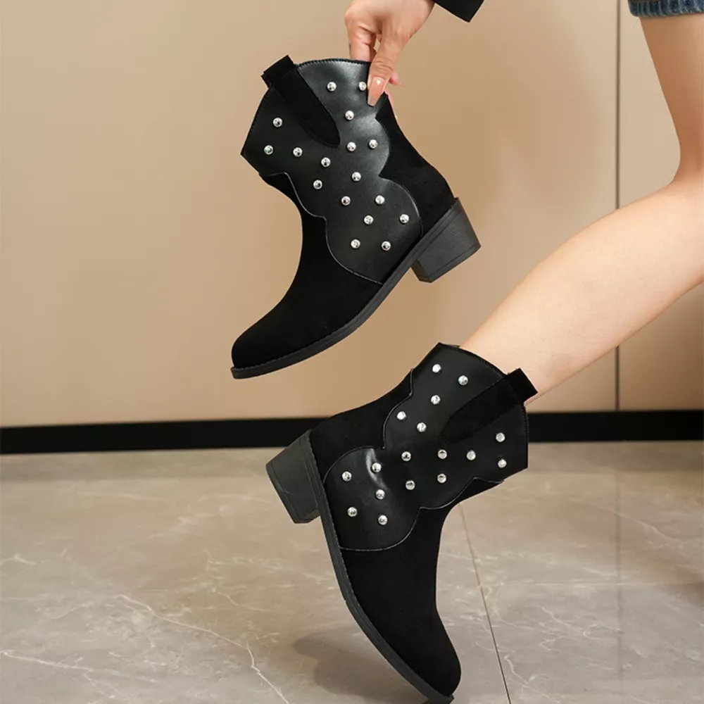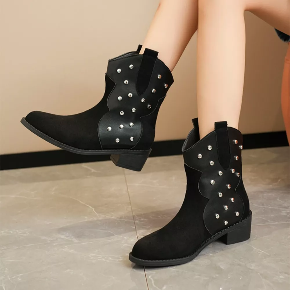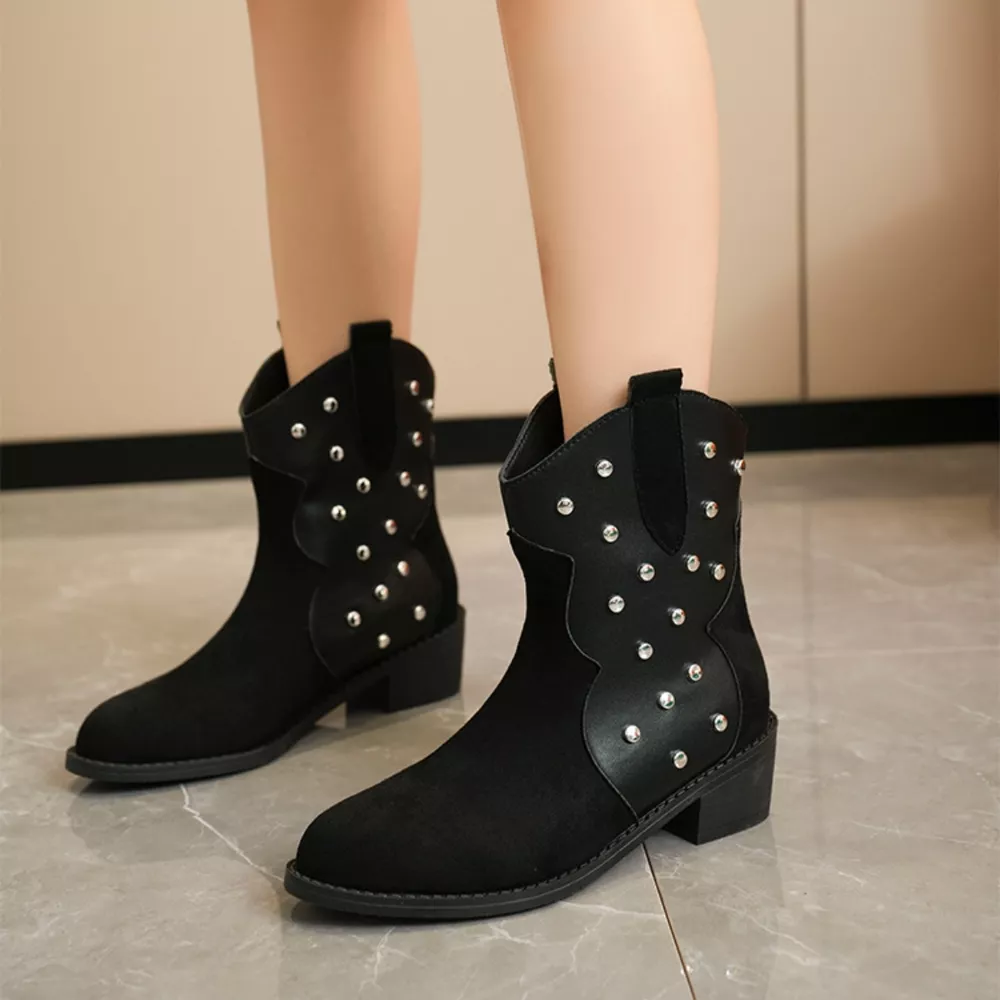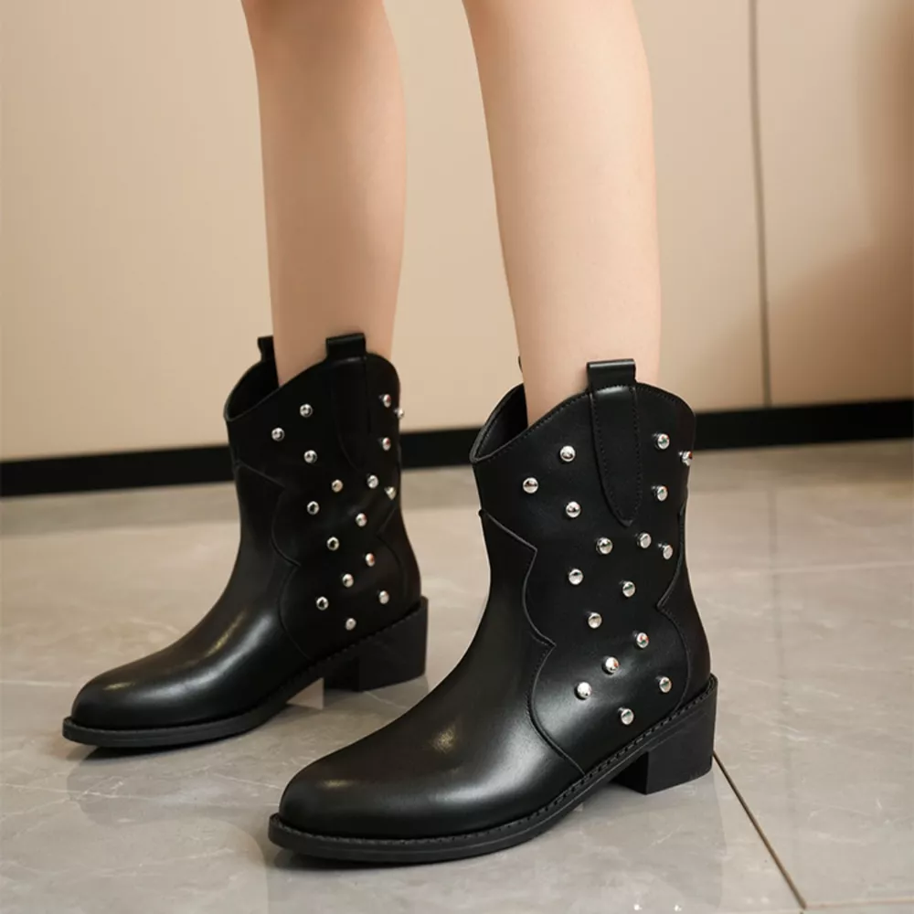 Studded Western Ankle Boots