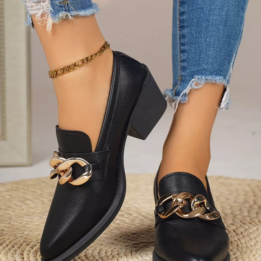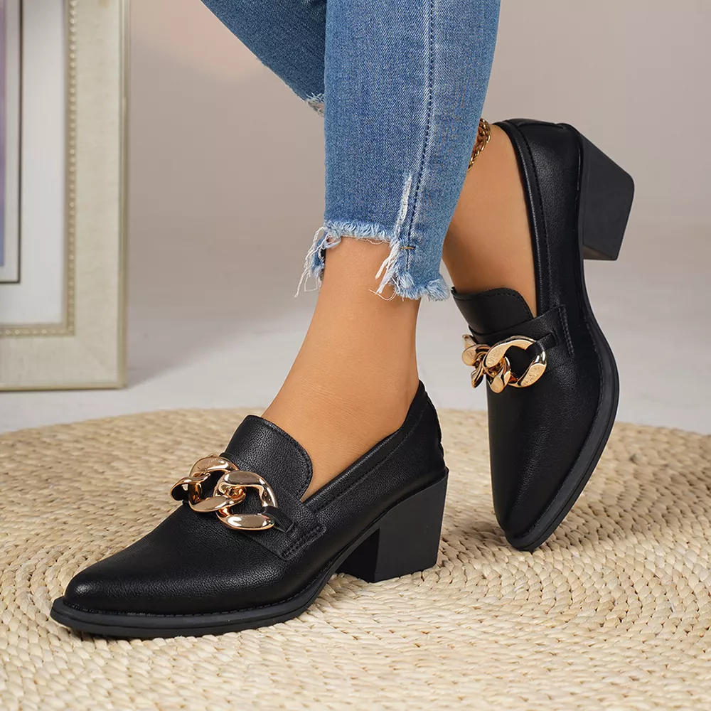 Point Toe Block Heels Loafers