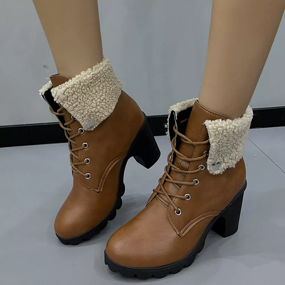 Lace Up Block Heels Boots