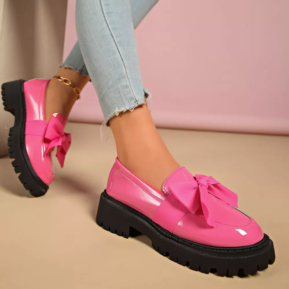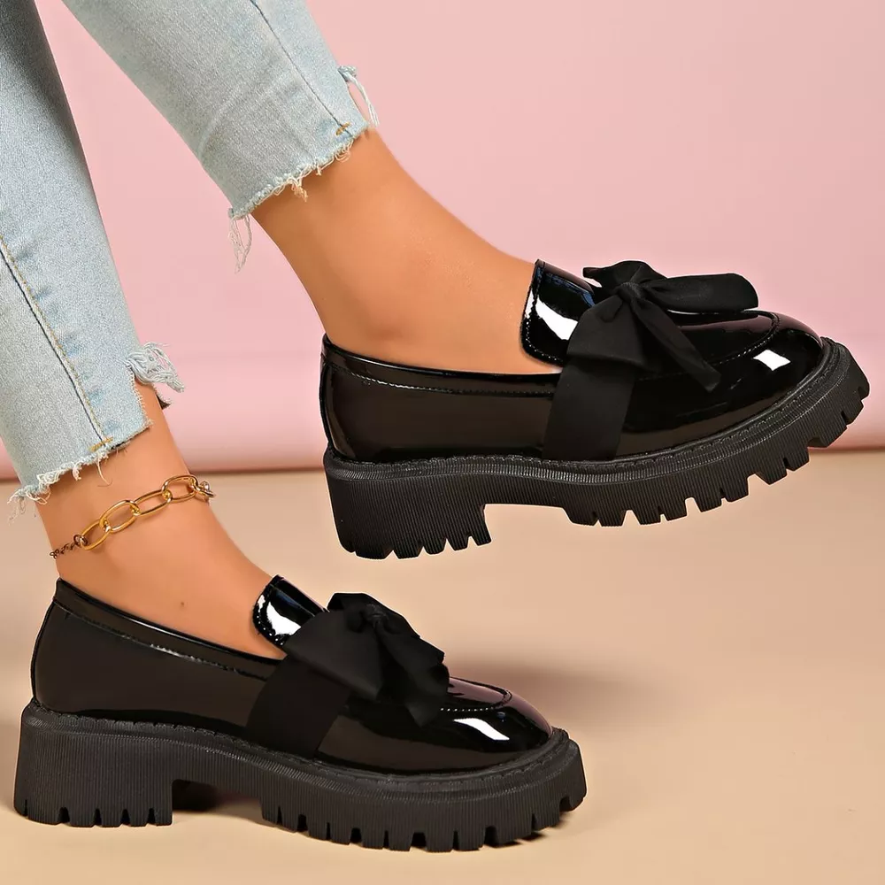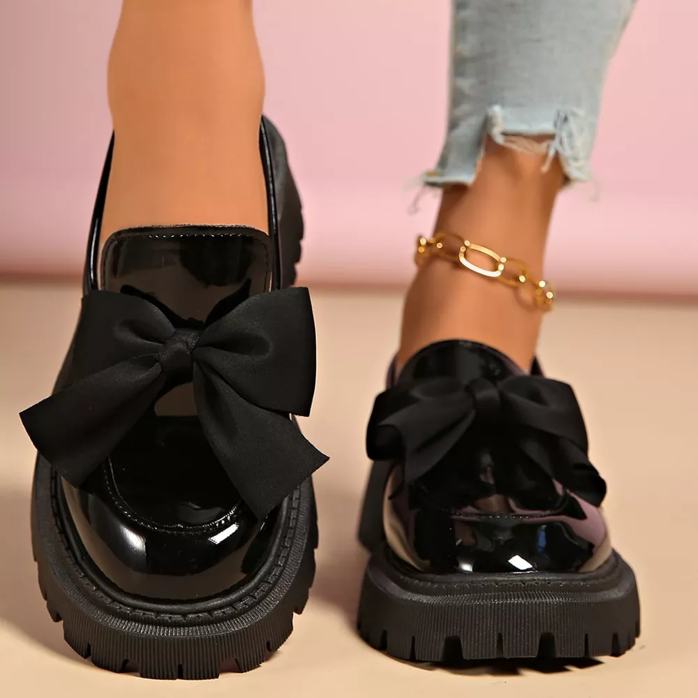 Bow Decor Round Toe Loafers
