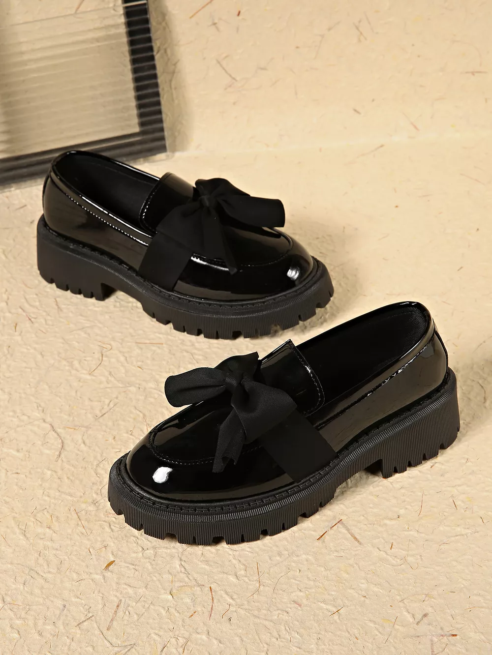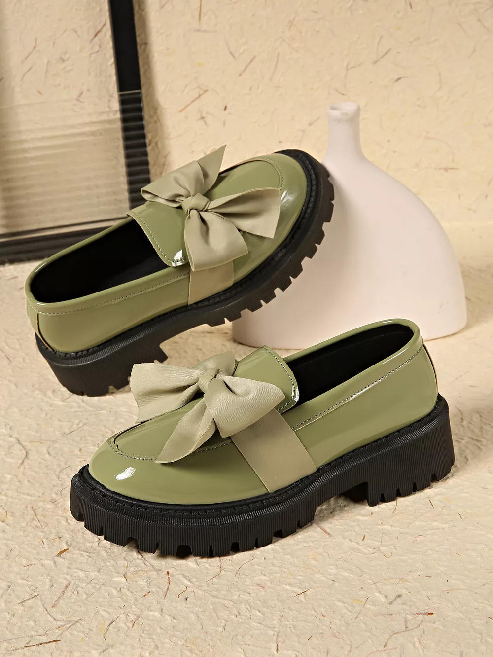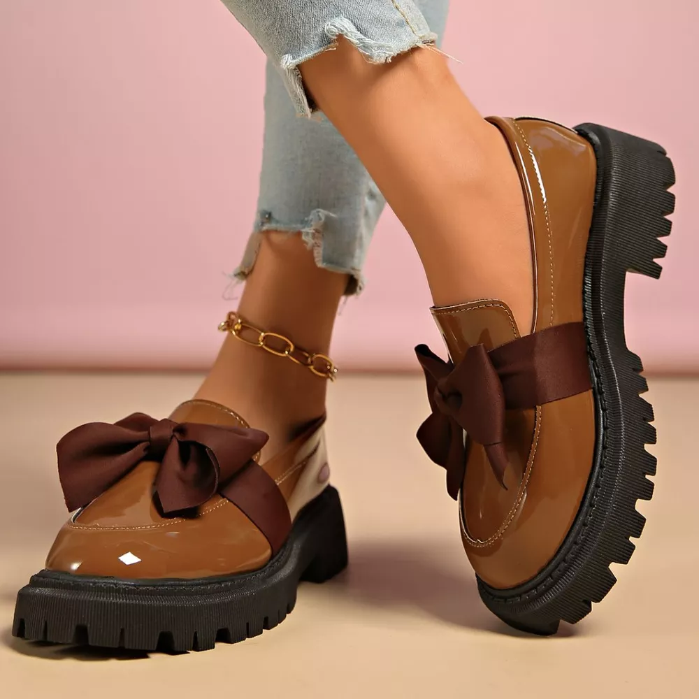 Bow Decor Round Toe Loafers