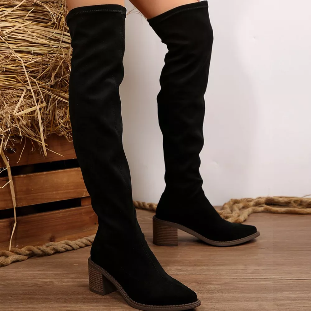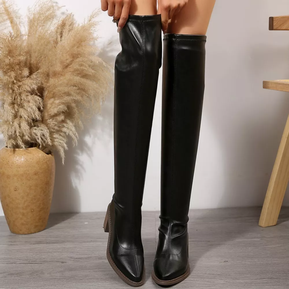 Point Toe Block Heels Boots