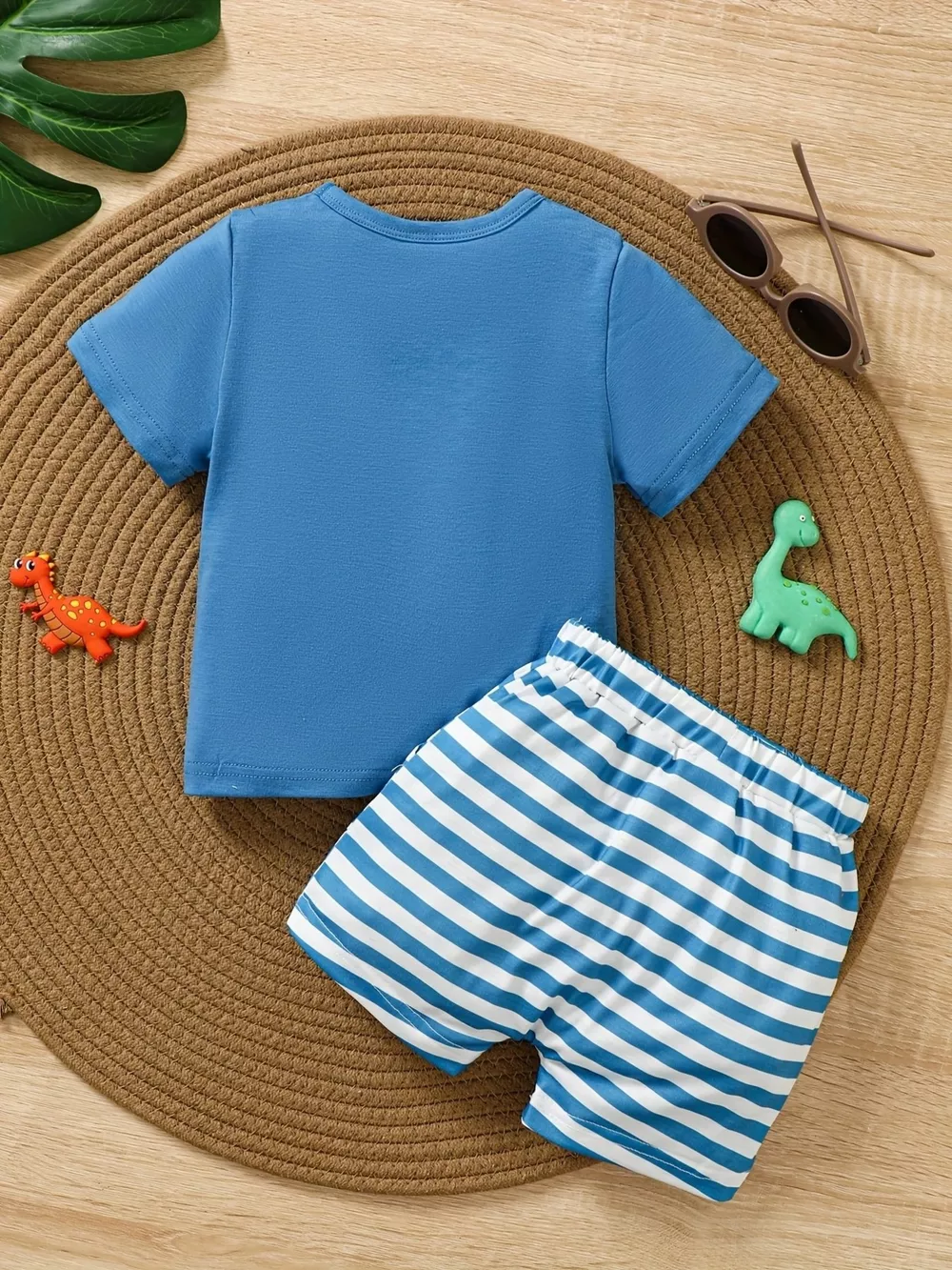 Children's Dinosaur Print Tee & Striped Shorts Set