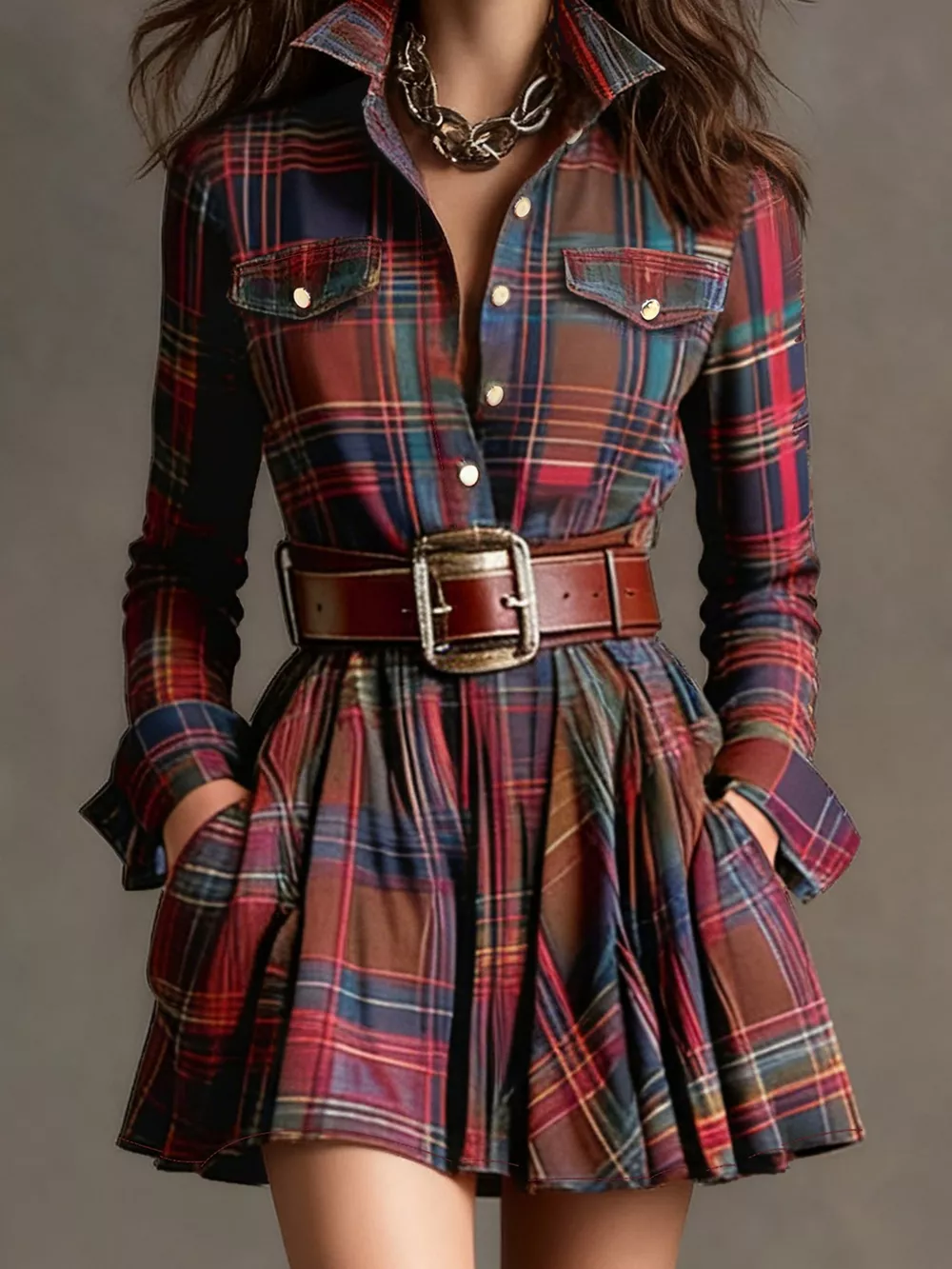 Plaid Long Sleeve Shirt Dress