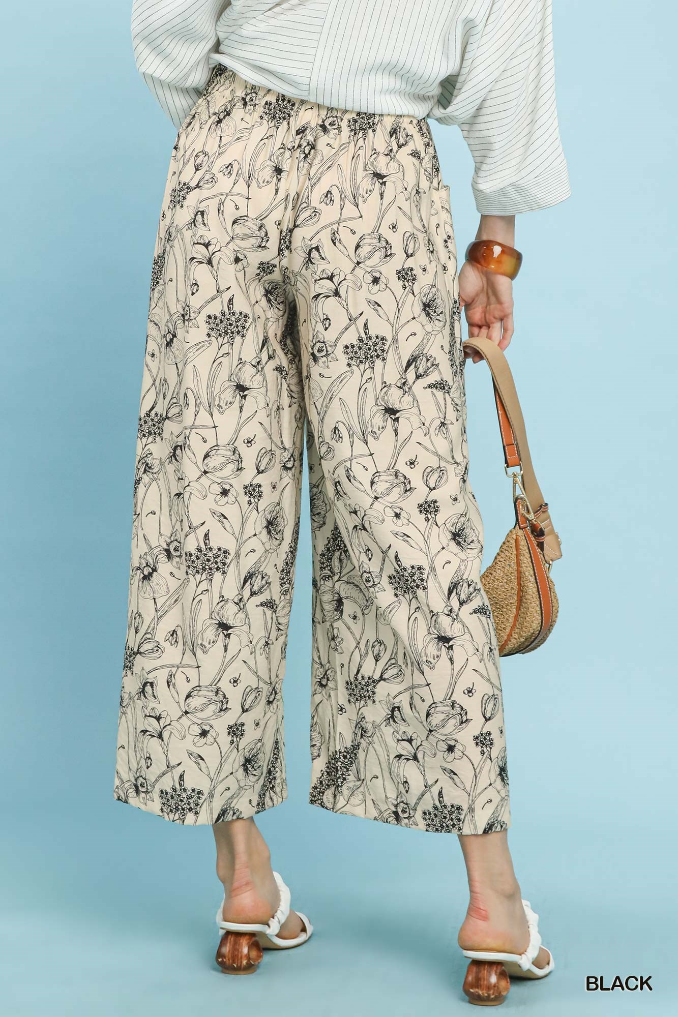 These stylish pants feature a trendy two-tone floral print that adds a bold and eye-catching element to your outfit. The wide-leg silhouette offers a relaxed and flowy fit that is both comfortable and chic. With an elastic waistband, these pants are easy to slip on and provide a comfortable fit. The addition of pleats adds a touch of sophistication to the design. Please note that these pants are not lined, making them perfect for warmer weather or for layering with tights in cooler seasons.