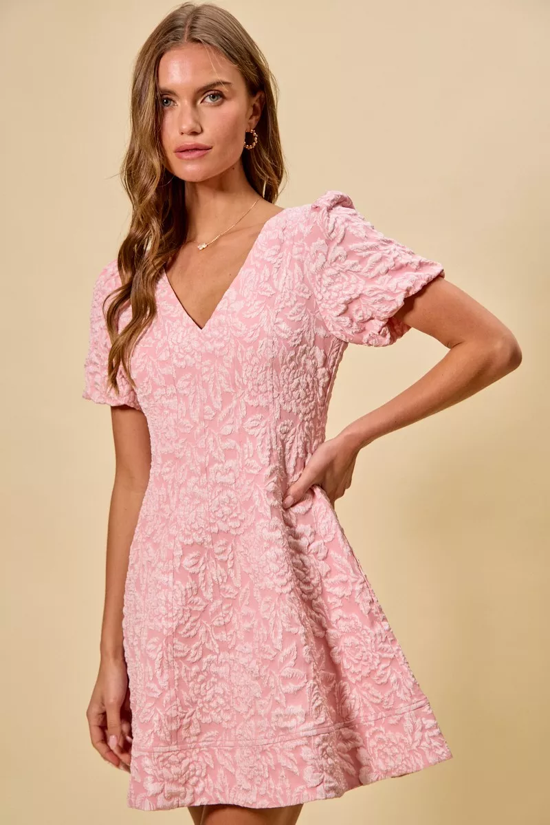 SO ME Floral Jacquard Fit And Flare Daily Mini Dress