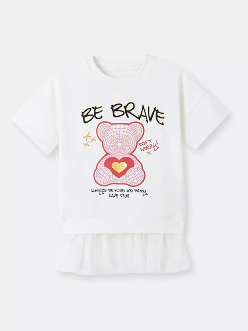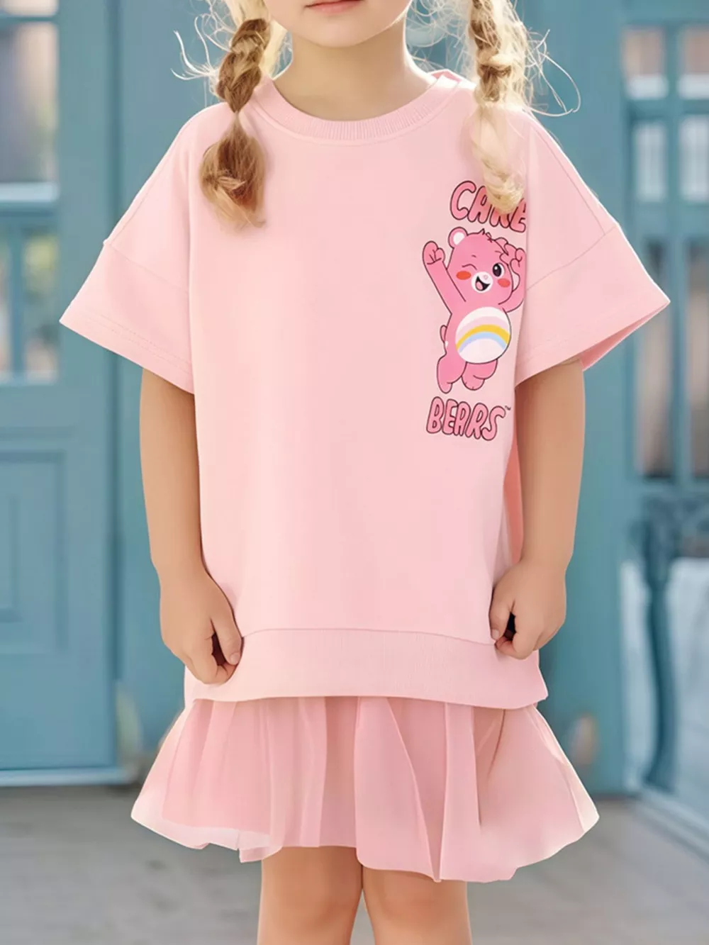 Children's Bear Graphic Short Sleeve Sweatshirt Dress
