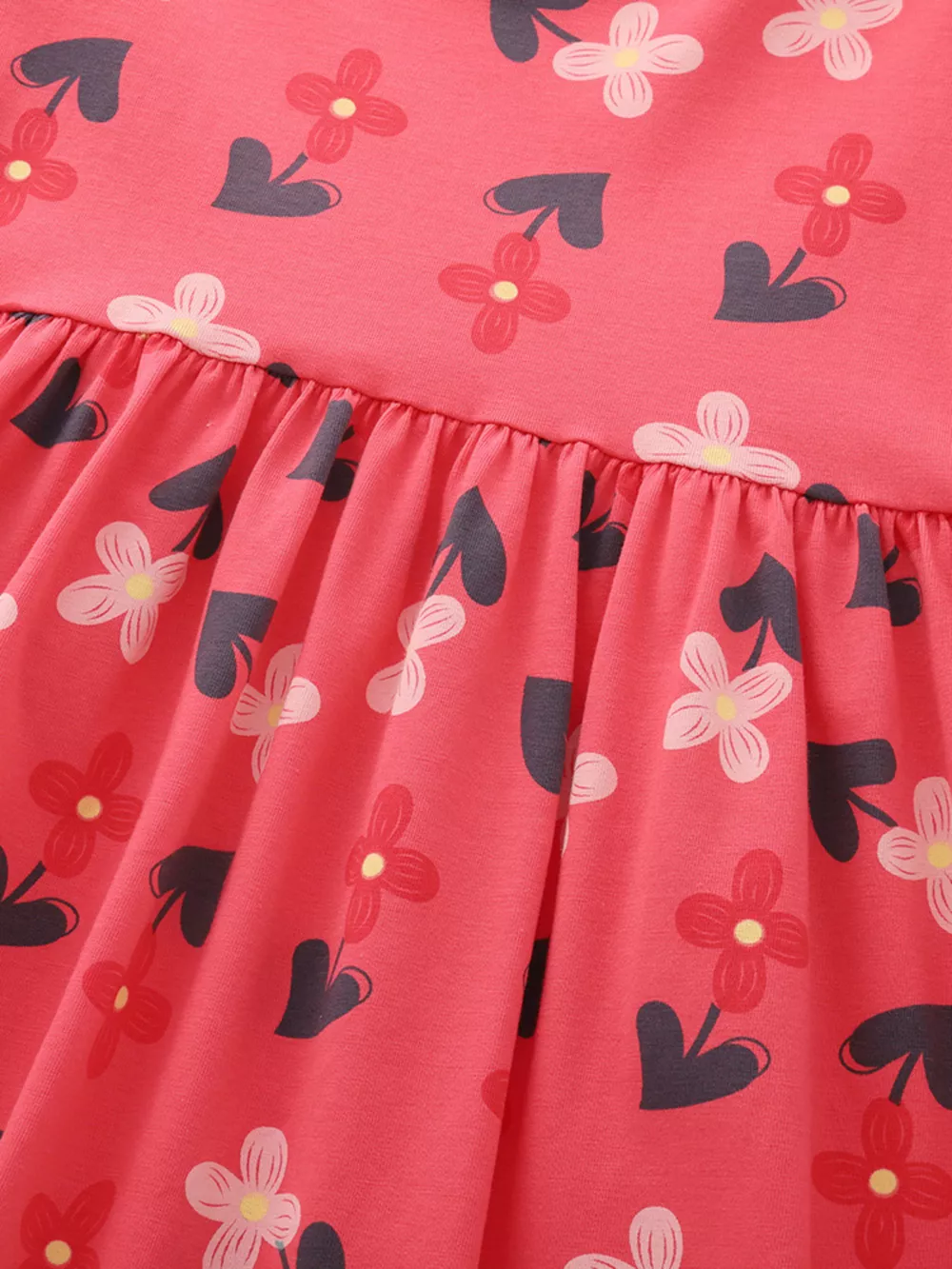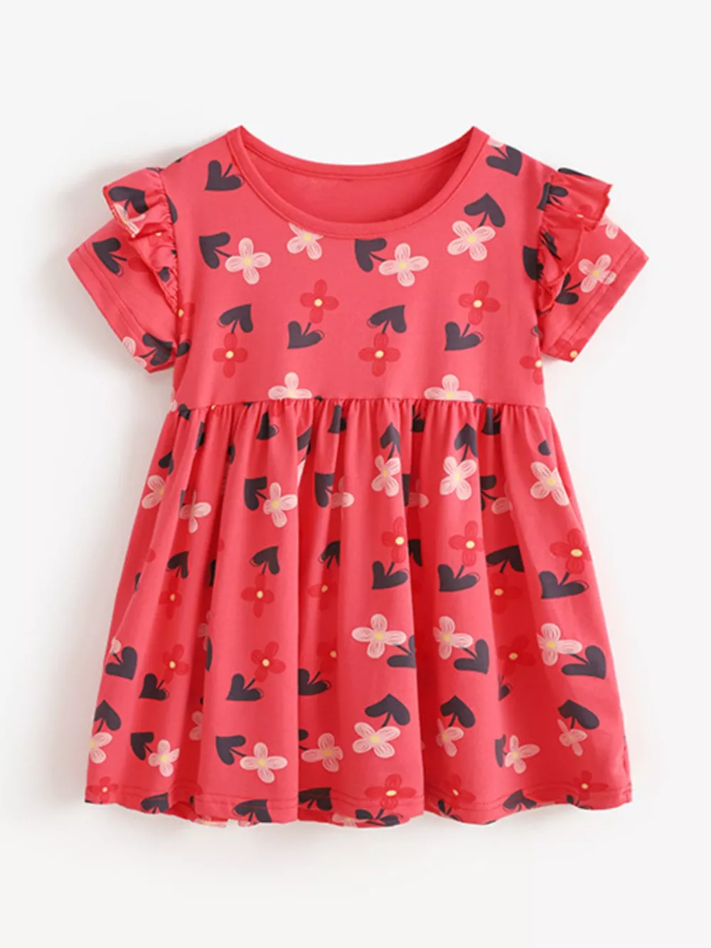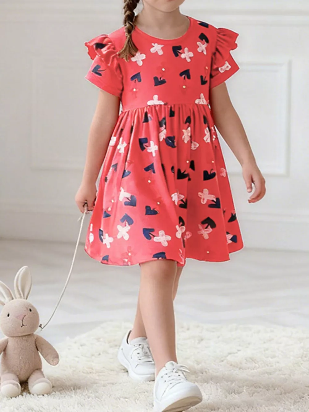 Children's Floral Print Ruffle Sleeve Casual Dress