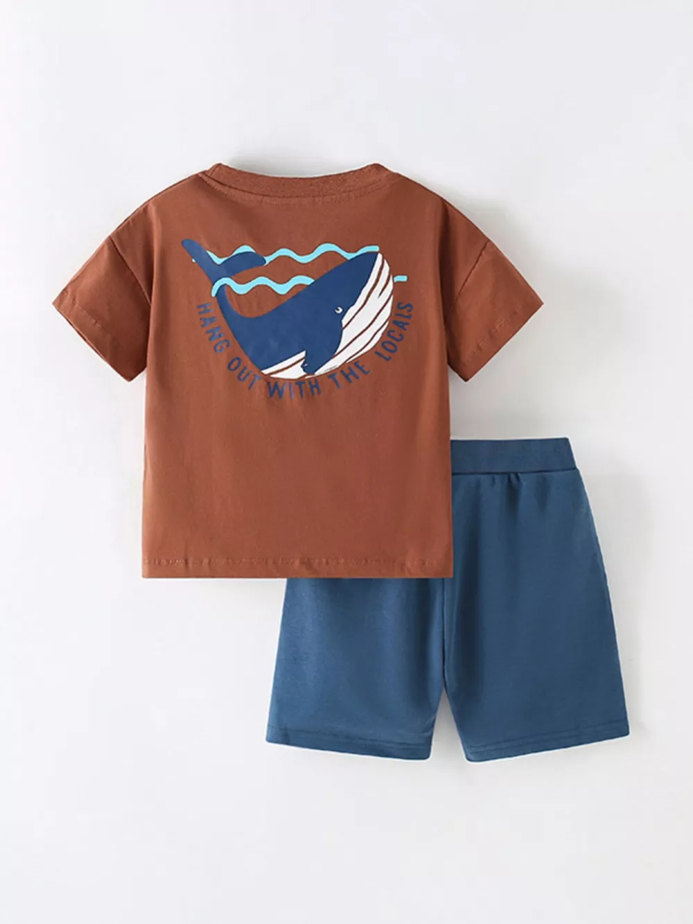 Children's Whale Round Neck Top and Shorts Set