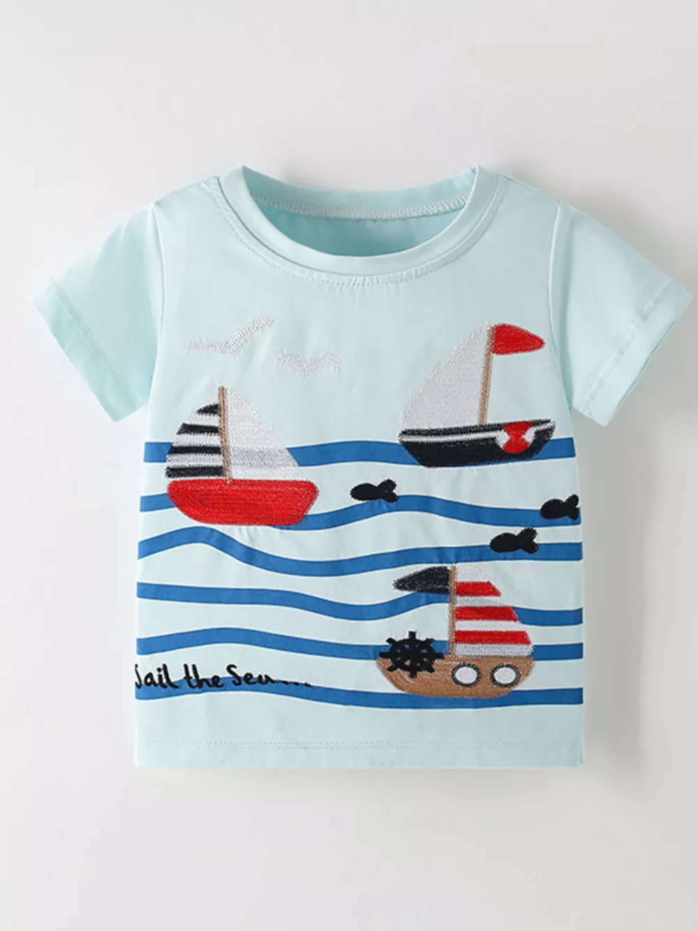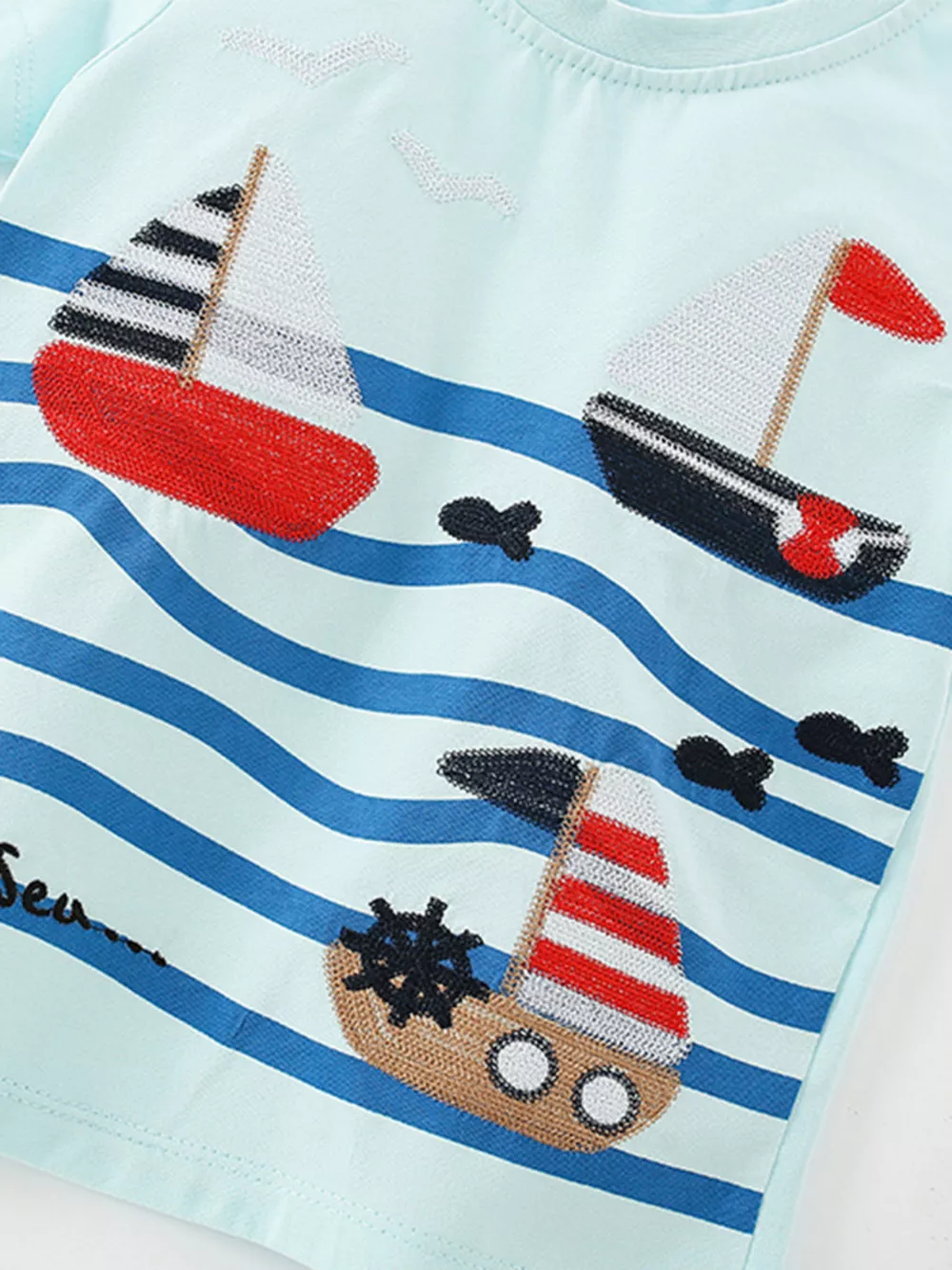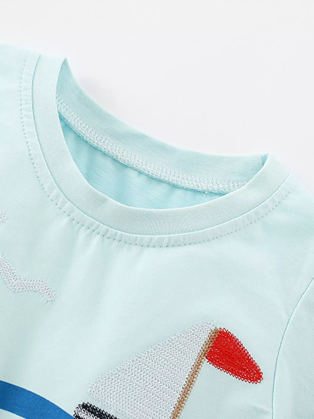 Children's Sailboat Embroidered Short Sleeve T-Shirt