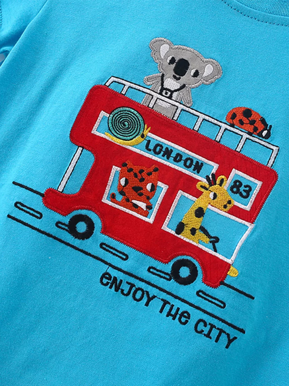 Children's Cartoon Bus Embroidery Short Sleeve T-Shirt