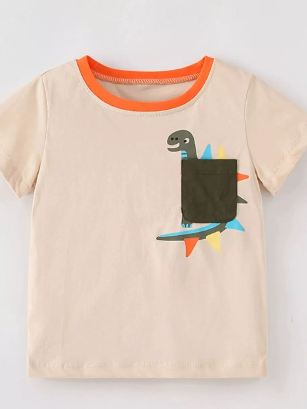 Children's Cute Dinosaur Pocket Short Sleeve T-Shirt