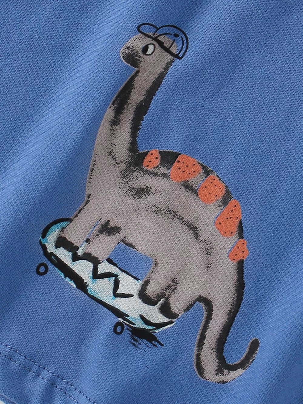 Children's Dinosaur Skateboard Print Crew Neck Short Sleeve T-Shirt