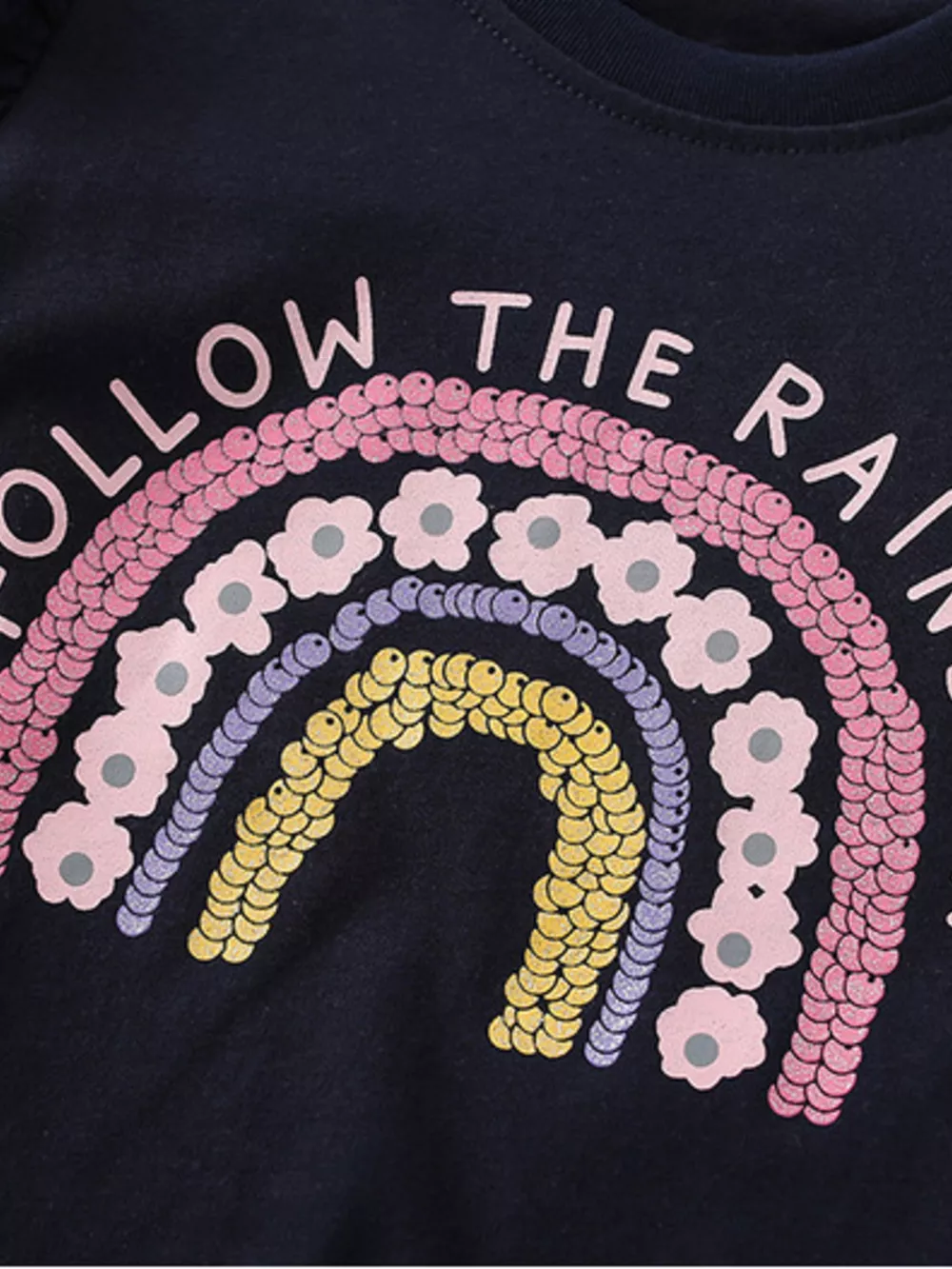Children's Follow The Rainbow Ruffle Sleeve T-Shirt and Shorts Set