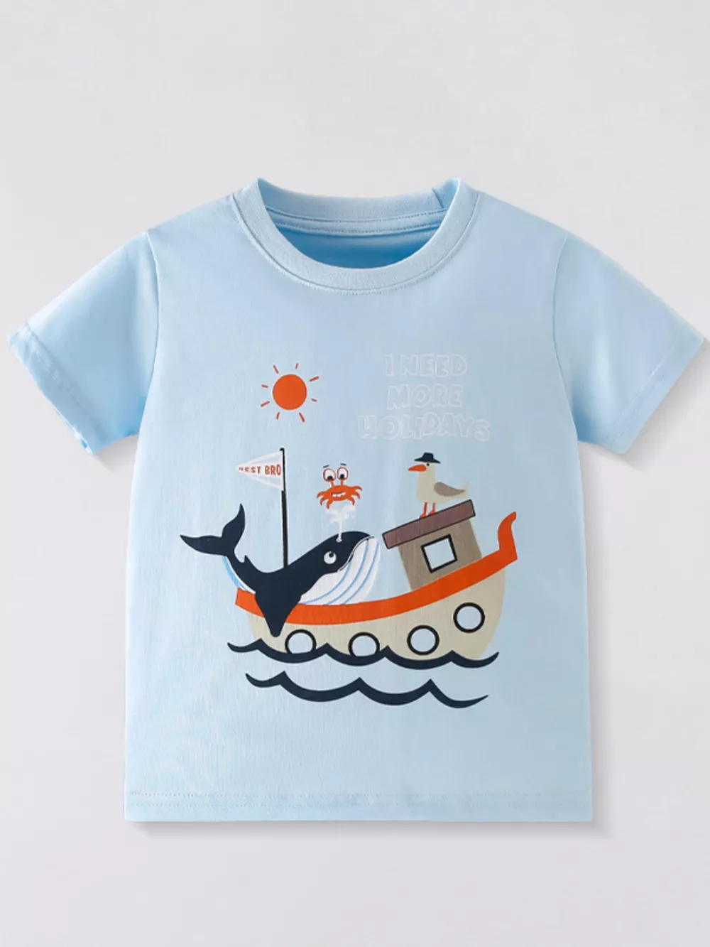 Children's Whale Boat Graphic Short Sleeve T-Shirt