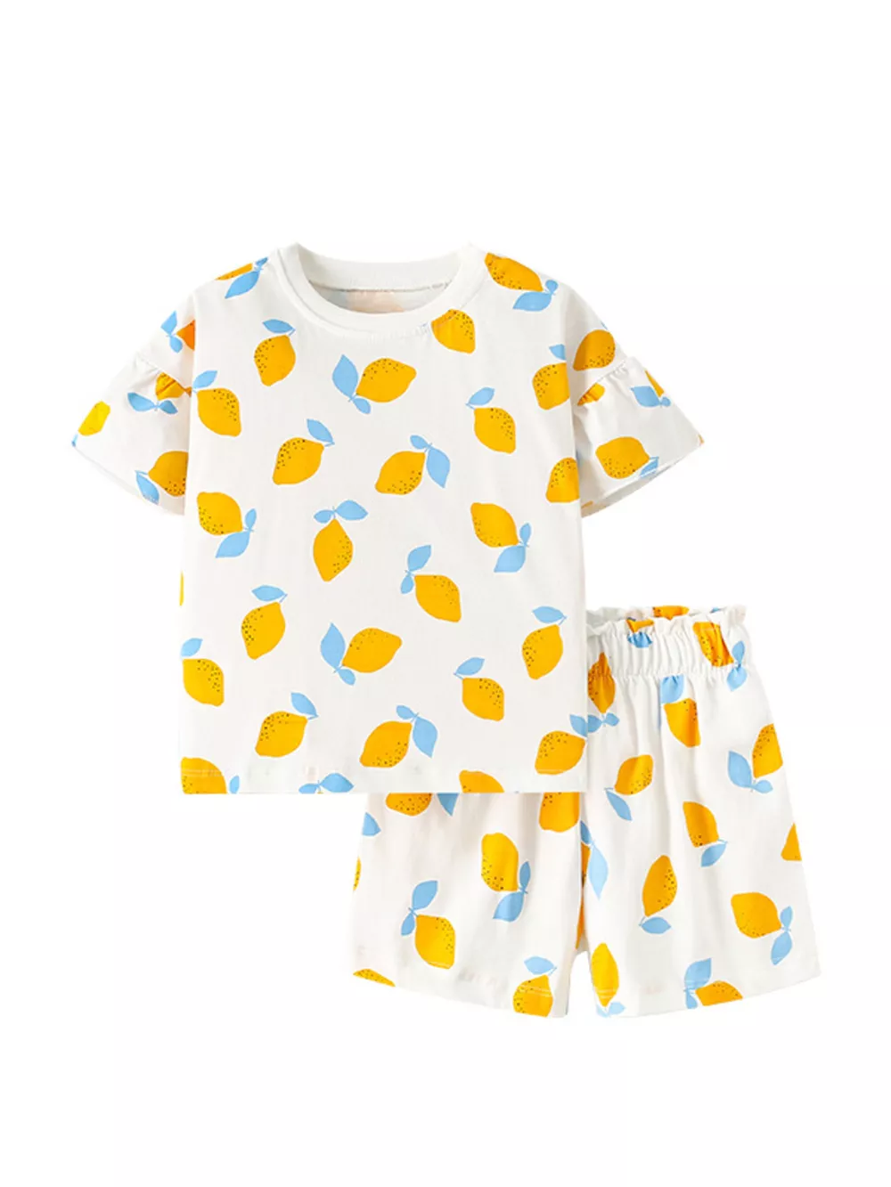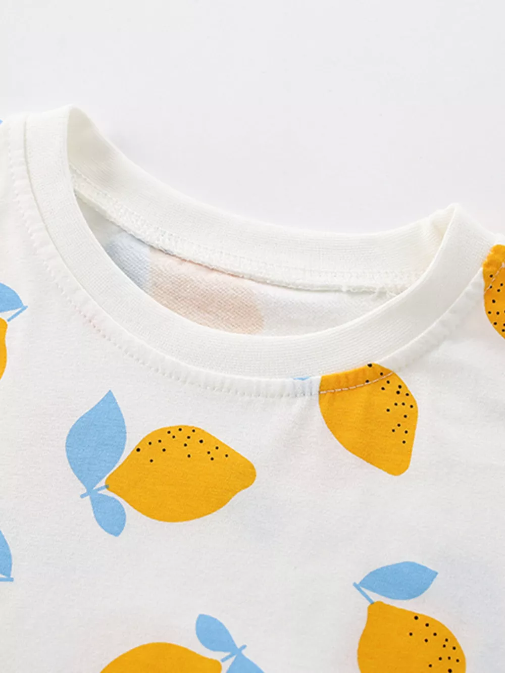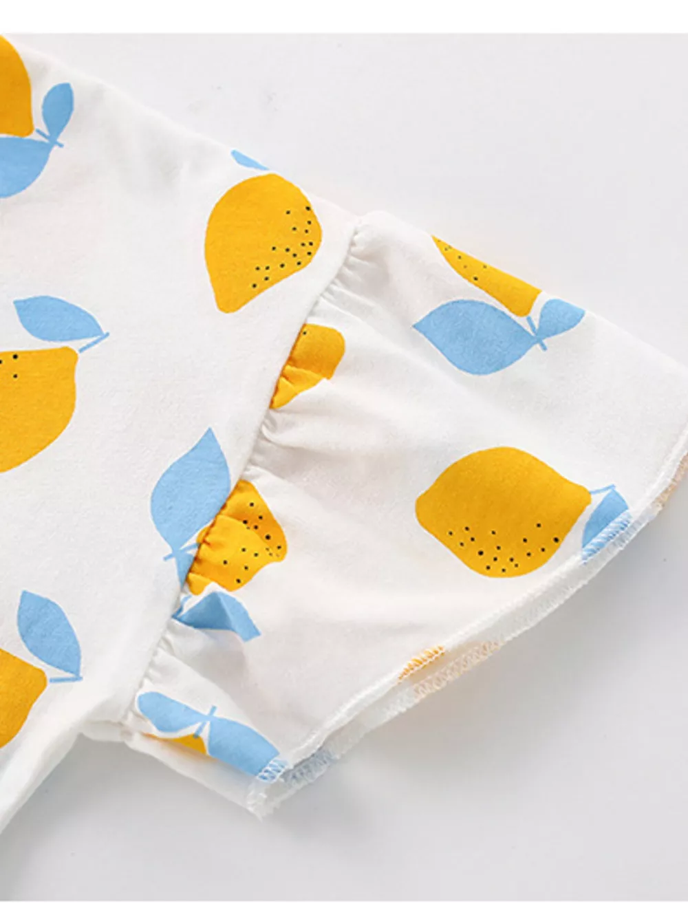 Children's Lemon Print Ruffle Sleeve Top and Shorts Set