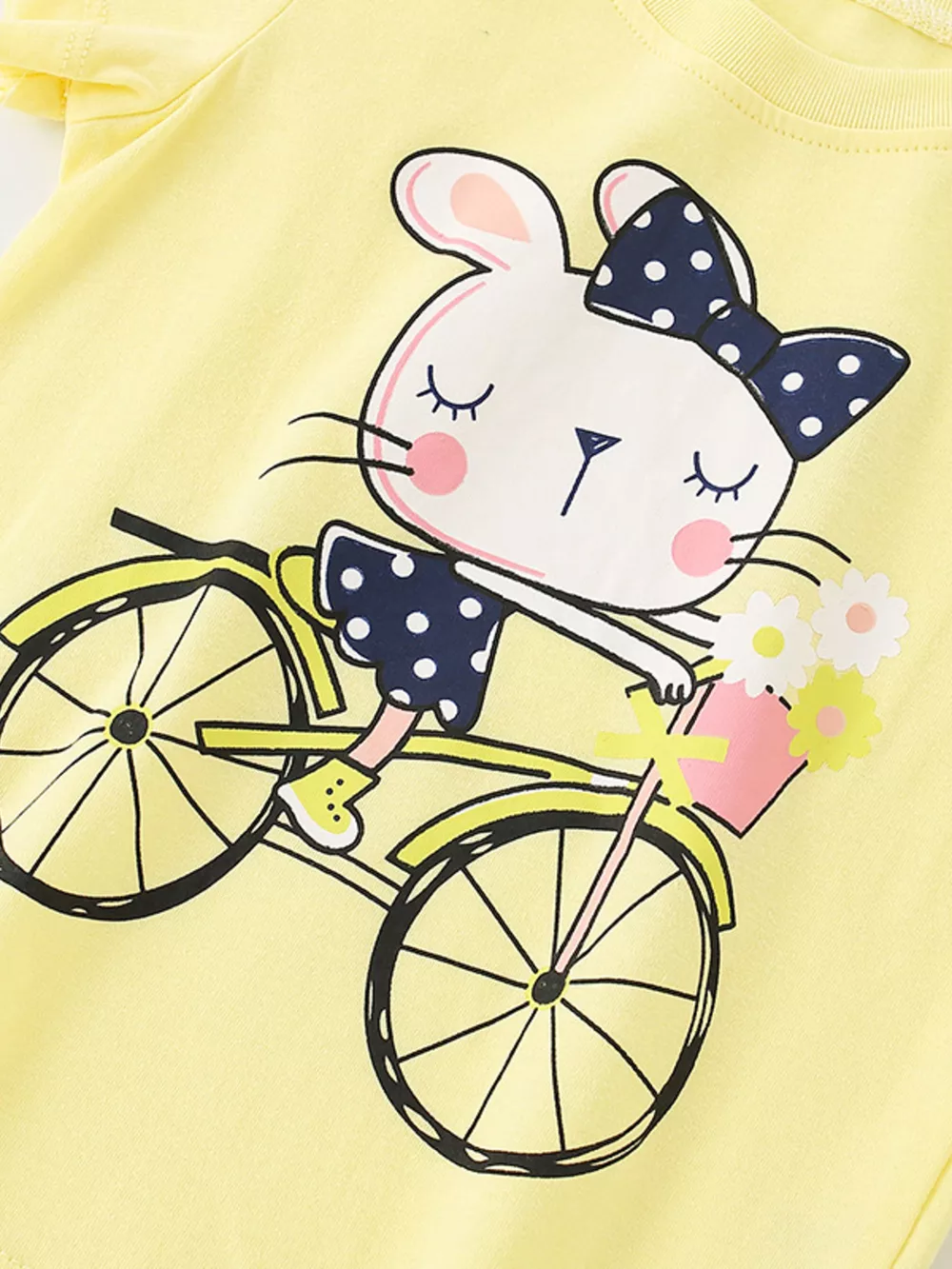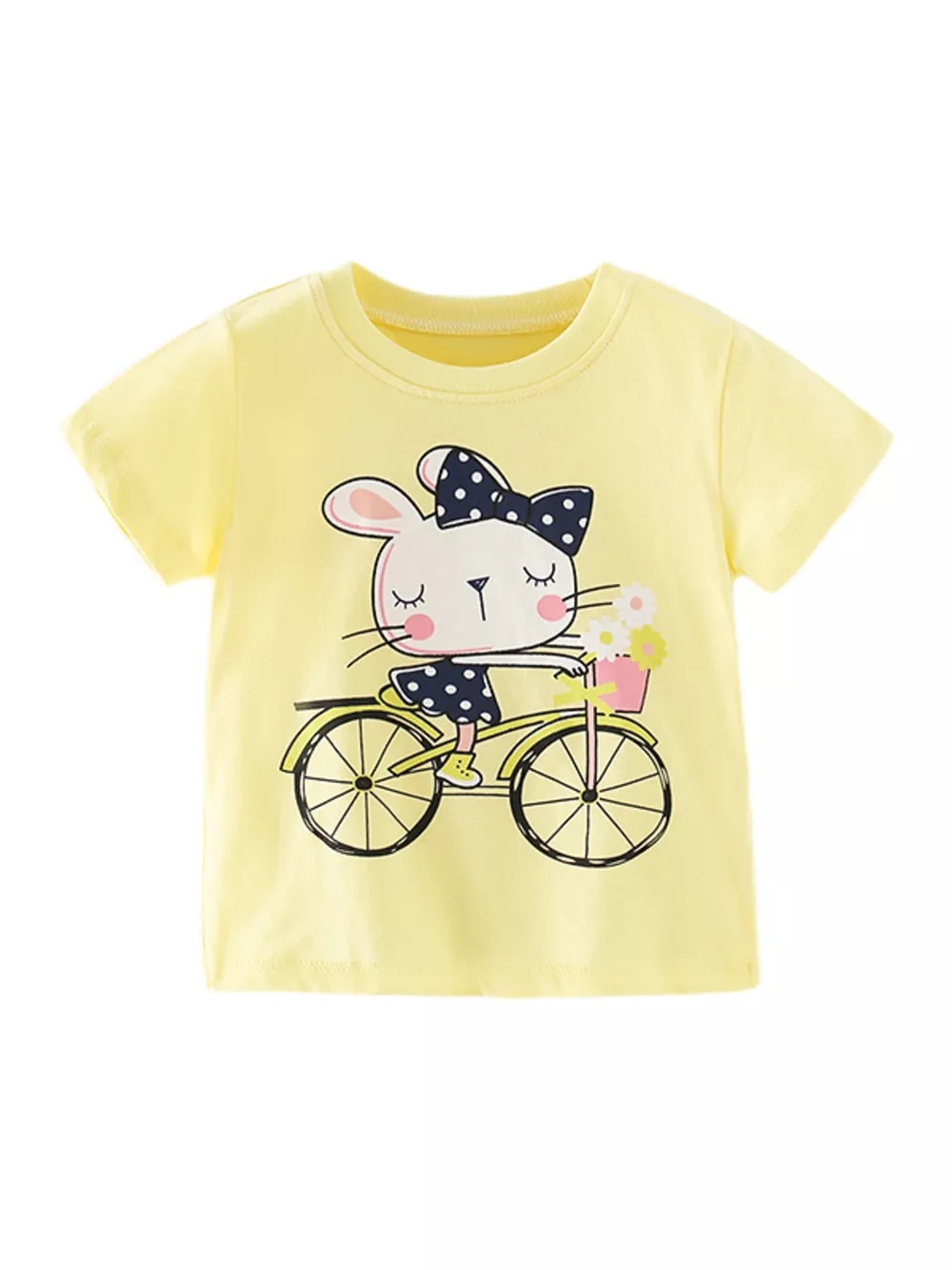 Children's Cartoon Rabbit Bicycle Short Sleeve T-Shirt