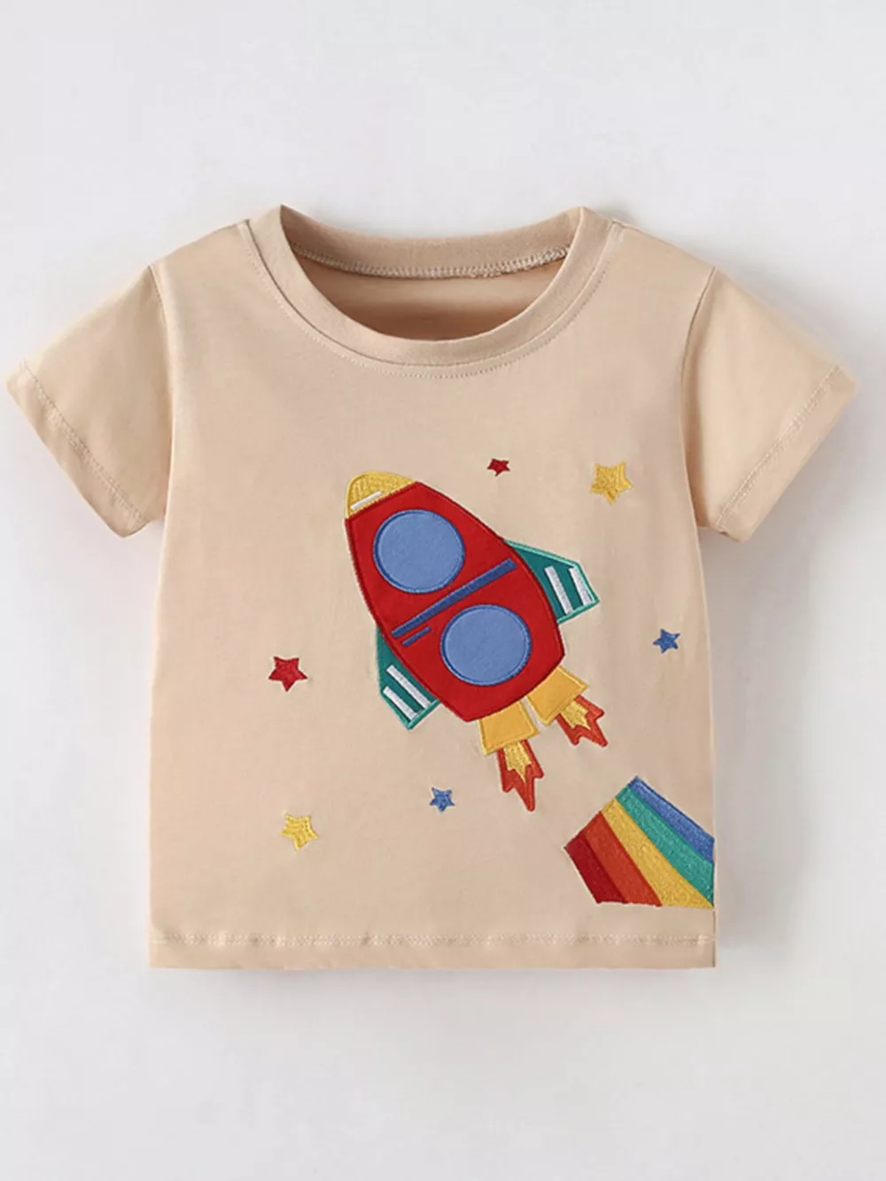 Children's Rocket Embroidered Short Sleeve T-Shirt