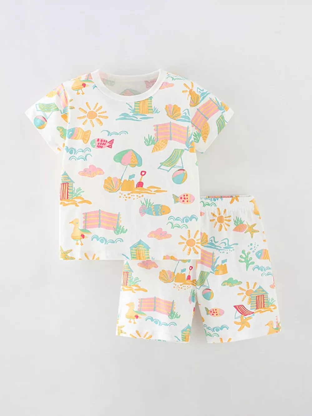 Children's Beach Print Round Neck Tee and Shorts Set