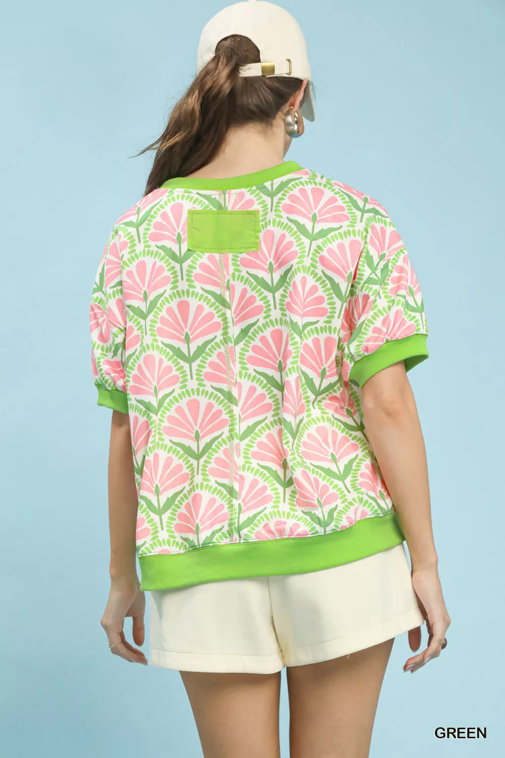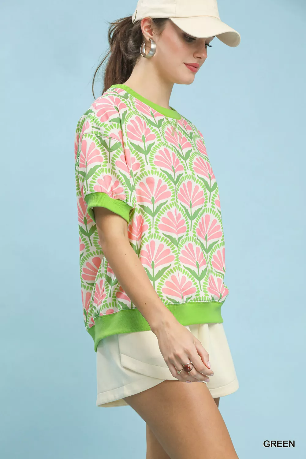 Umgee Floral Print Short Sleeve French Terry Top