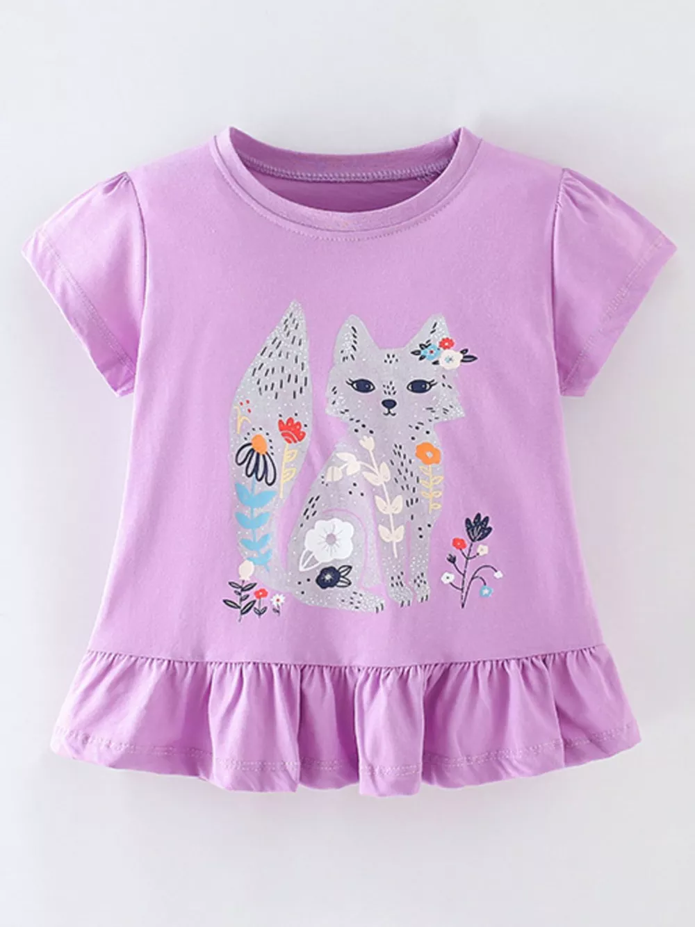 Children's Fox Graphic Ruffle Hem T-Shirt