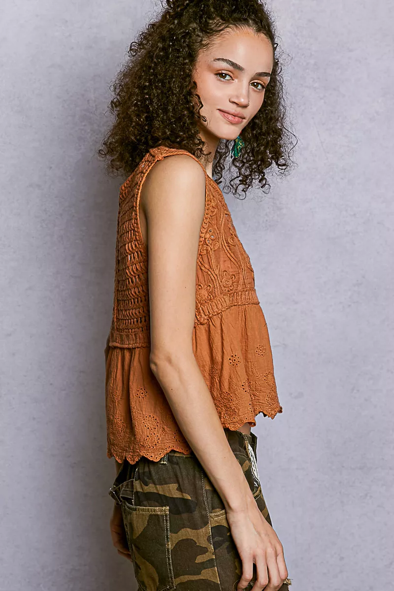 POL Crochet Cropped Tank with Scalloped Hem