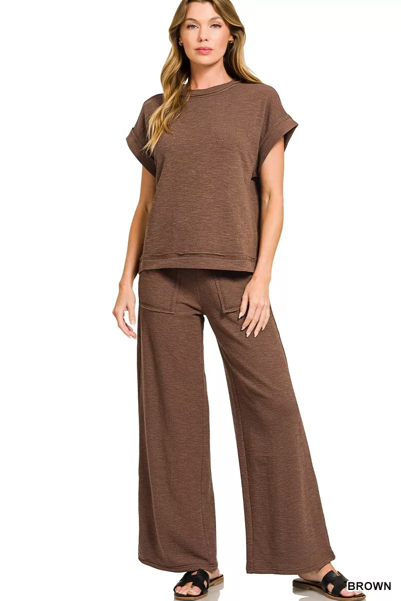 Zenana Cotton Slub Short Sleeve Tee and Pants Set