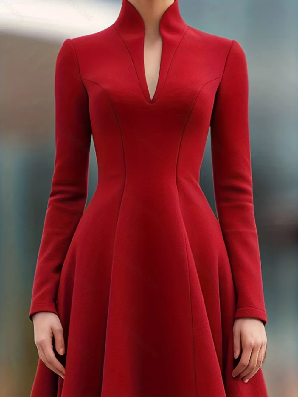 High Neck Long Sleeve A-Line Dress