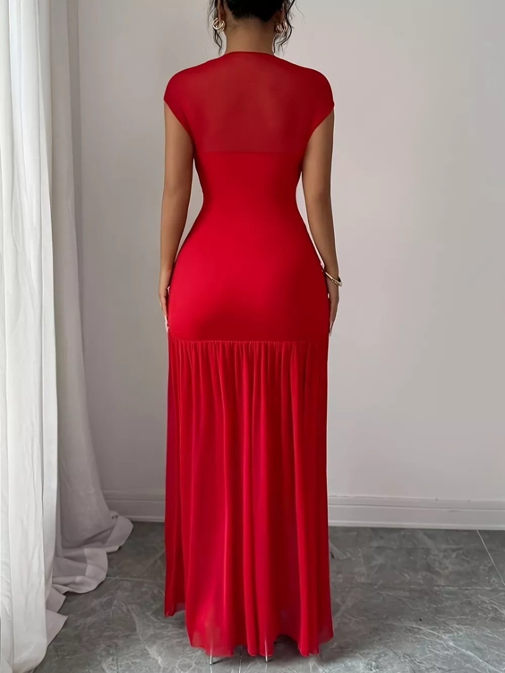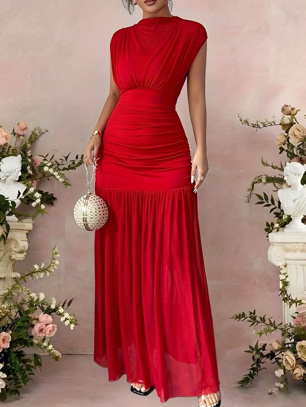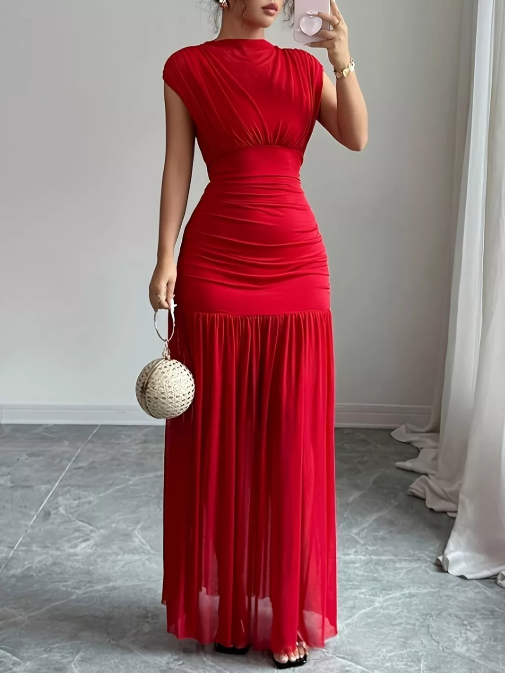 Ruched Cap Sleeve Maxi Dress