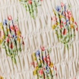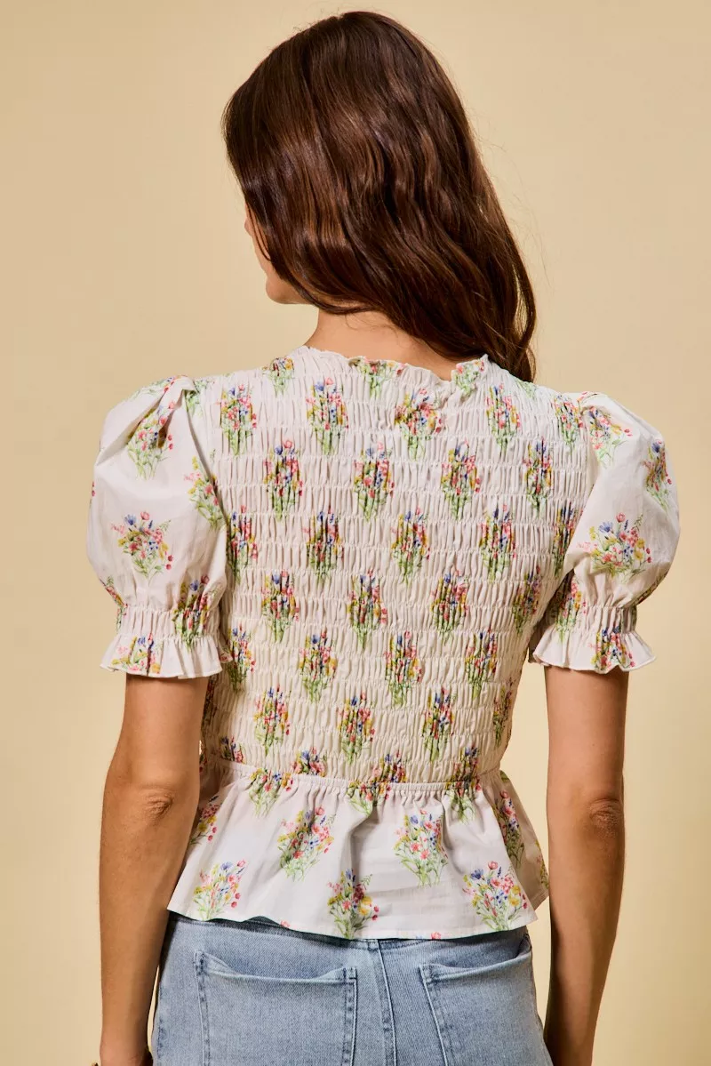 SO ME Floral Cotton Smocked Short Sleeves Blouse