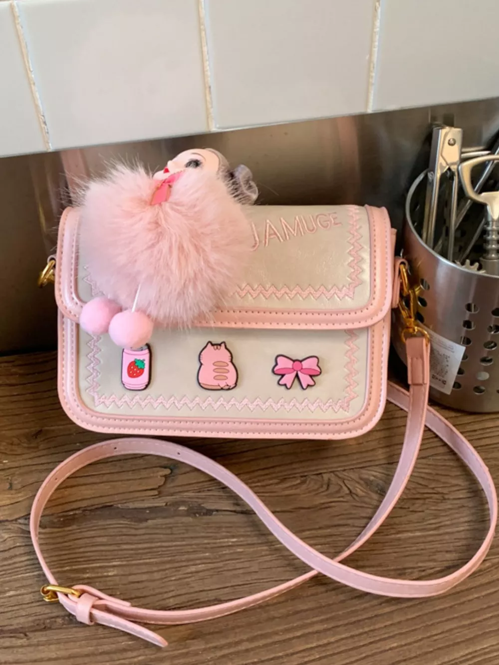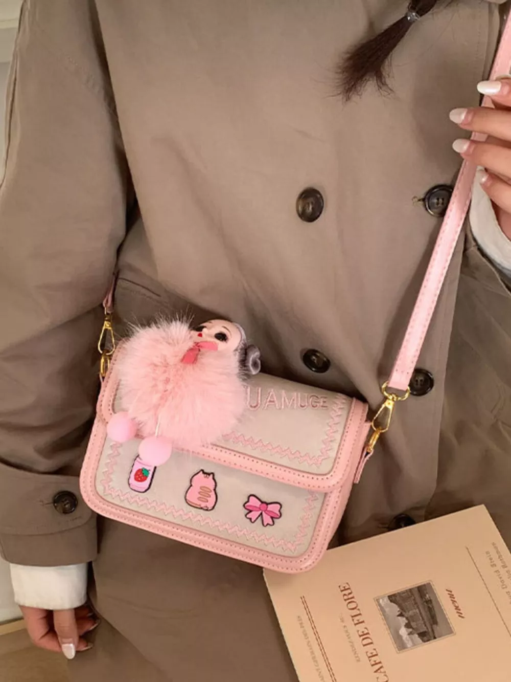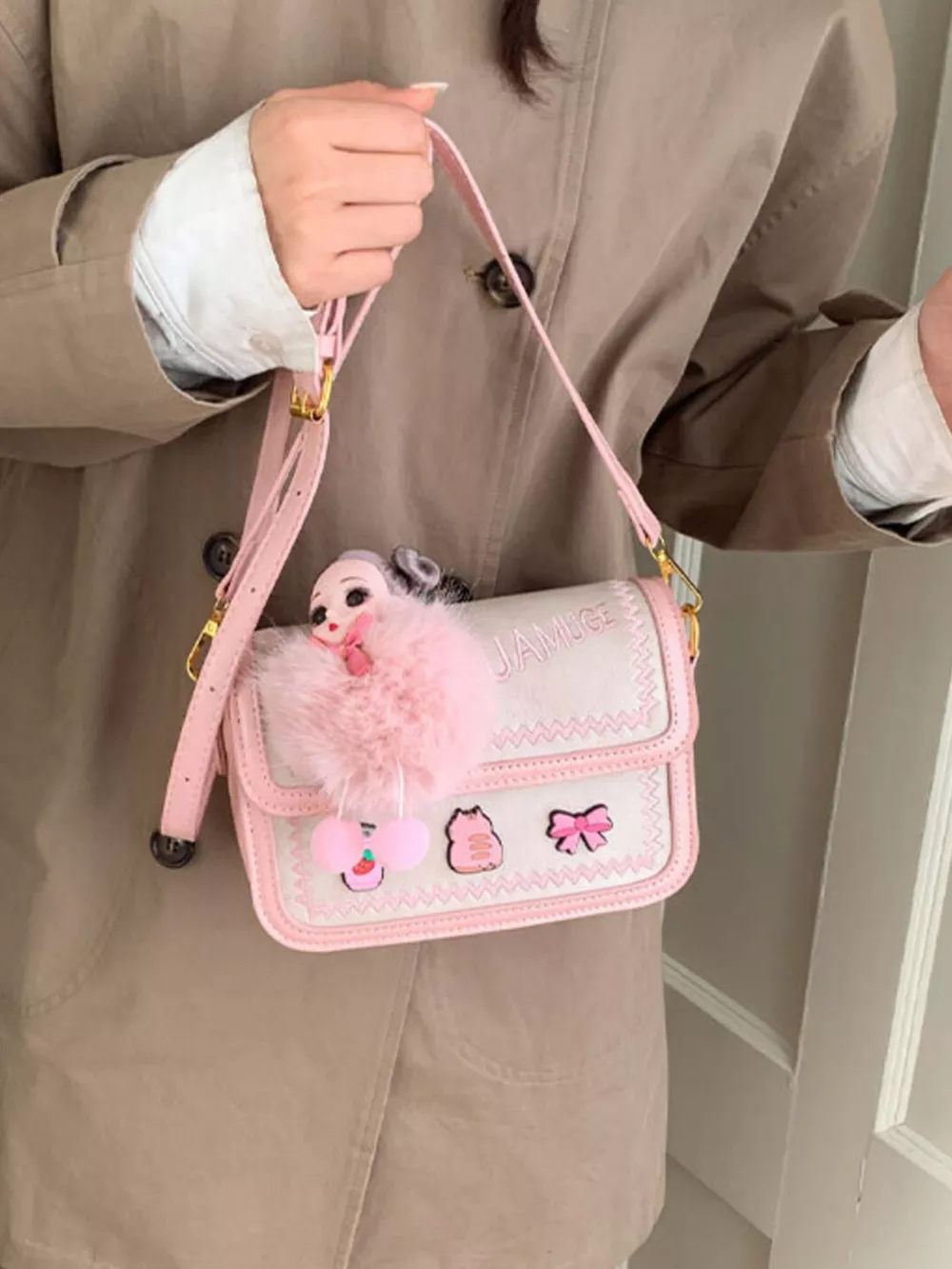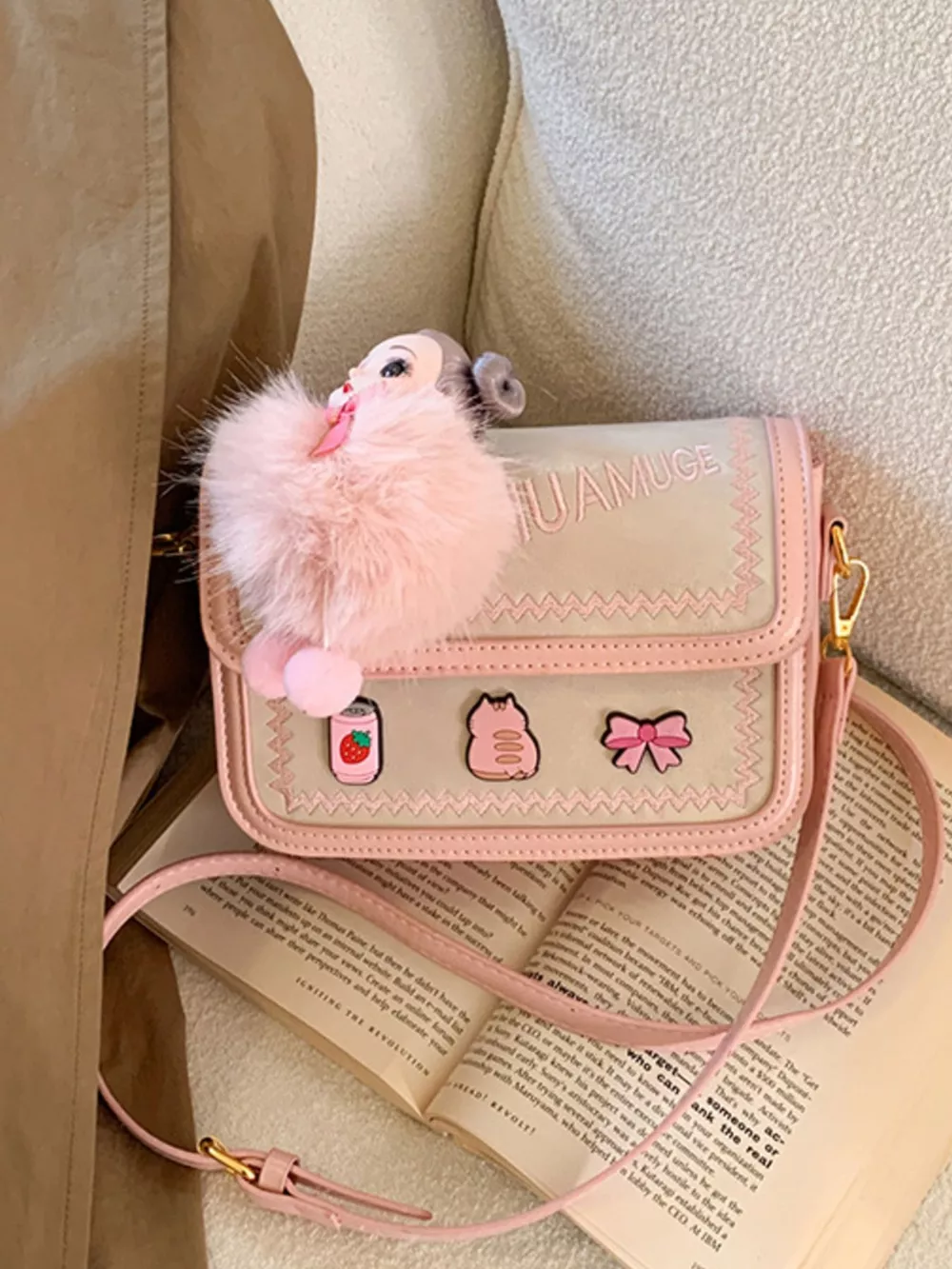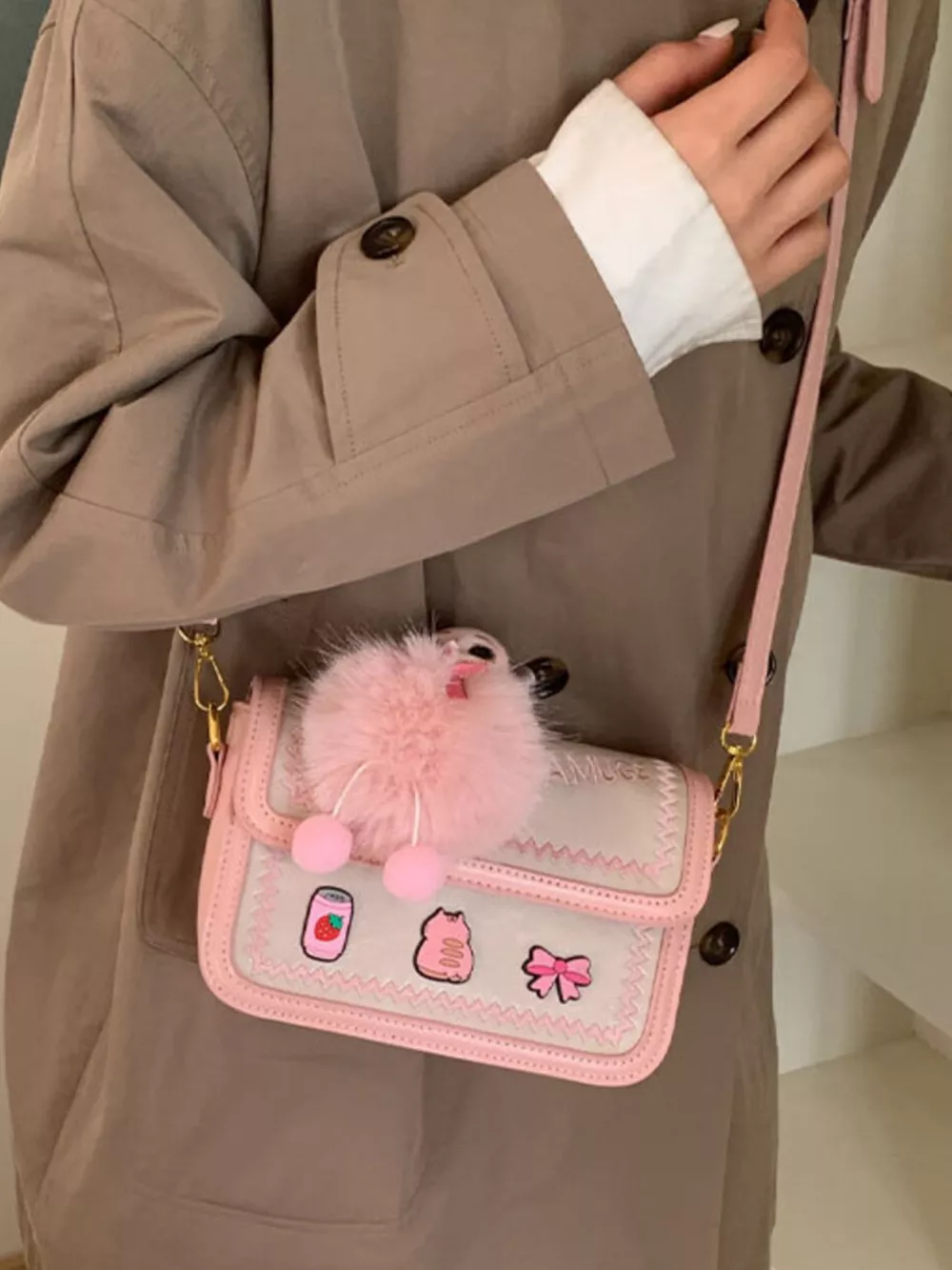 Cute Cartoon Patch Decor Crossbody Bag